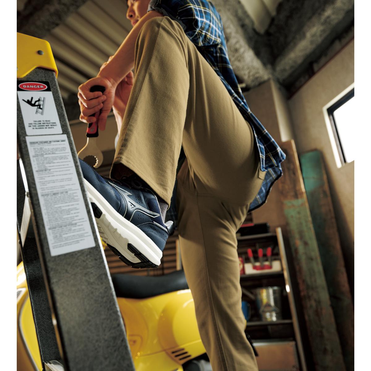 厚みがあって程よく凹凸のあるガッシリとした質感が特徴です。そんなカツラギ素材を横ストレッチ&やわらか風合いに仕上げて、絶妙な履き心地を実現しました。
