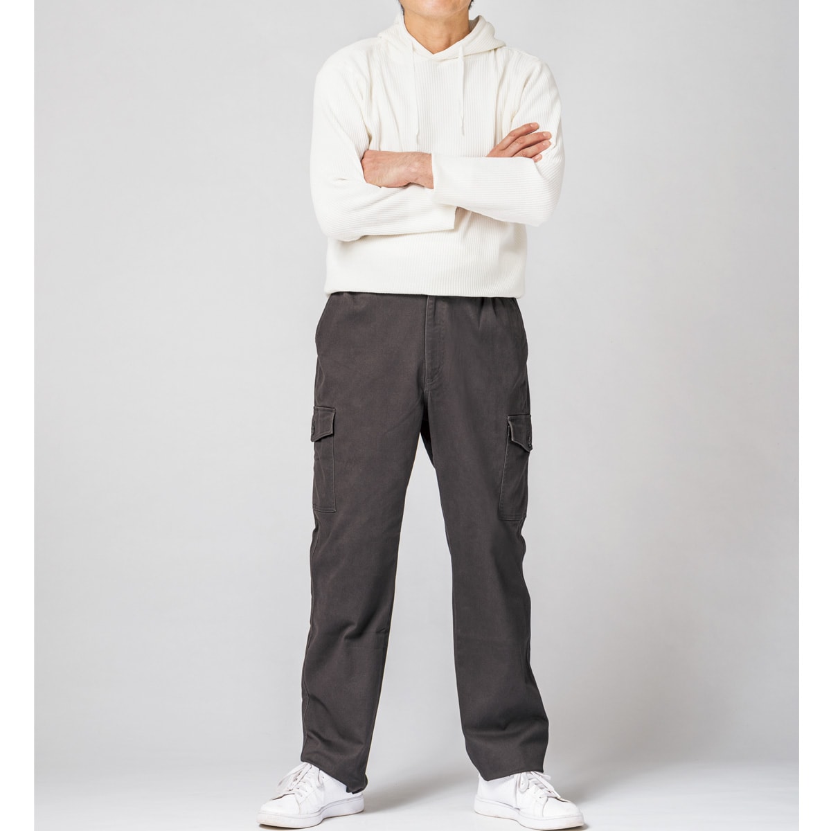週末DIYにも便利!カーゴポケット付きのイージーパンツ