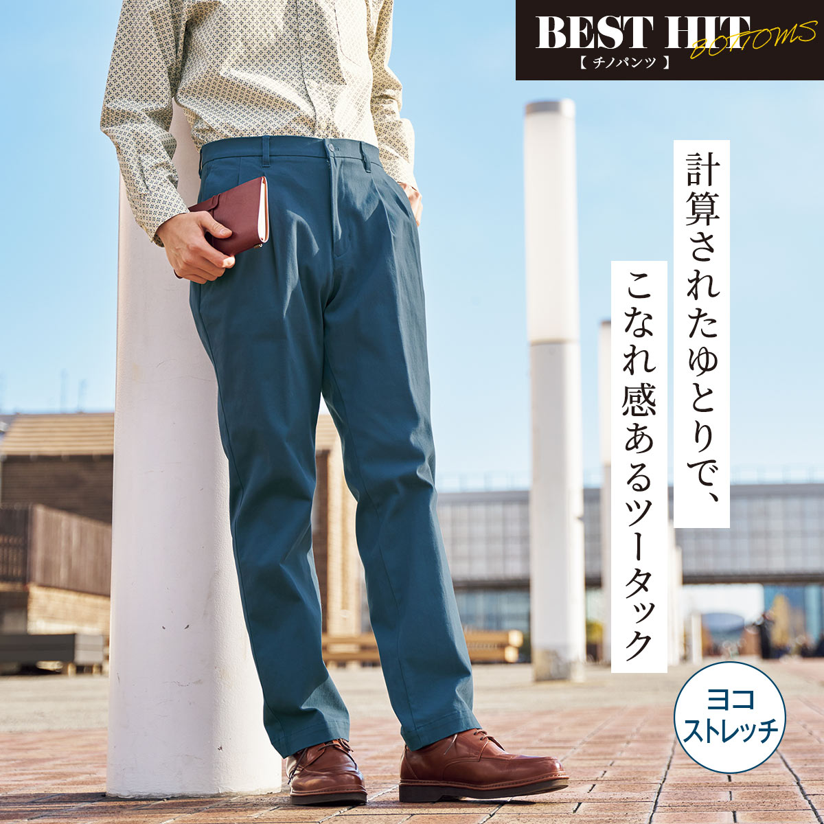 メンズセシールの大定番ストレッチ・ツータックチノ!腰回りゆったりで程よくすっきりしたシルエットが◎