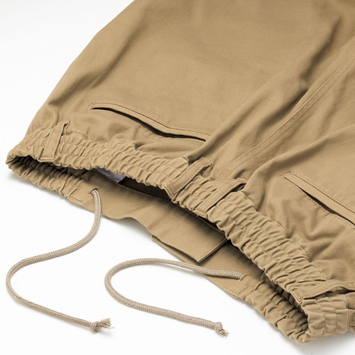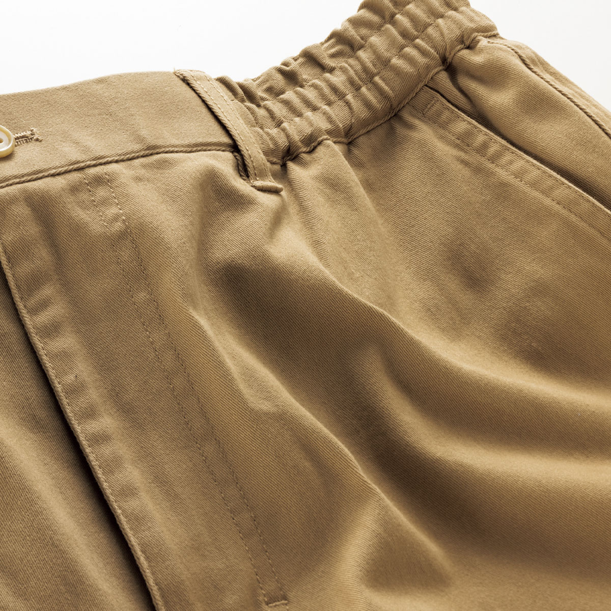 サンドベージュ総ゴム+ヒモ仕様でウエストらくらく