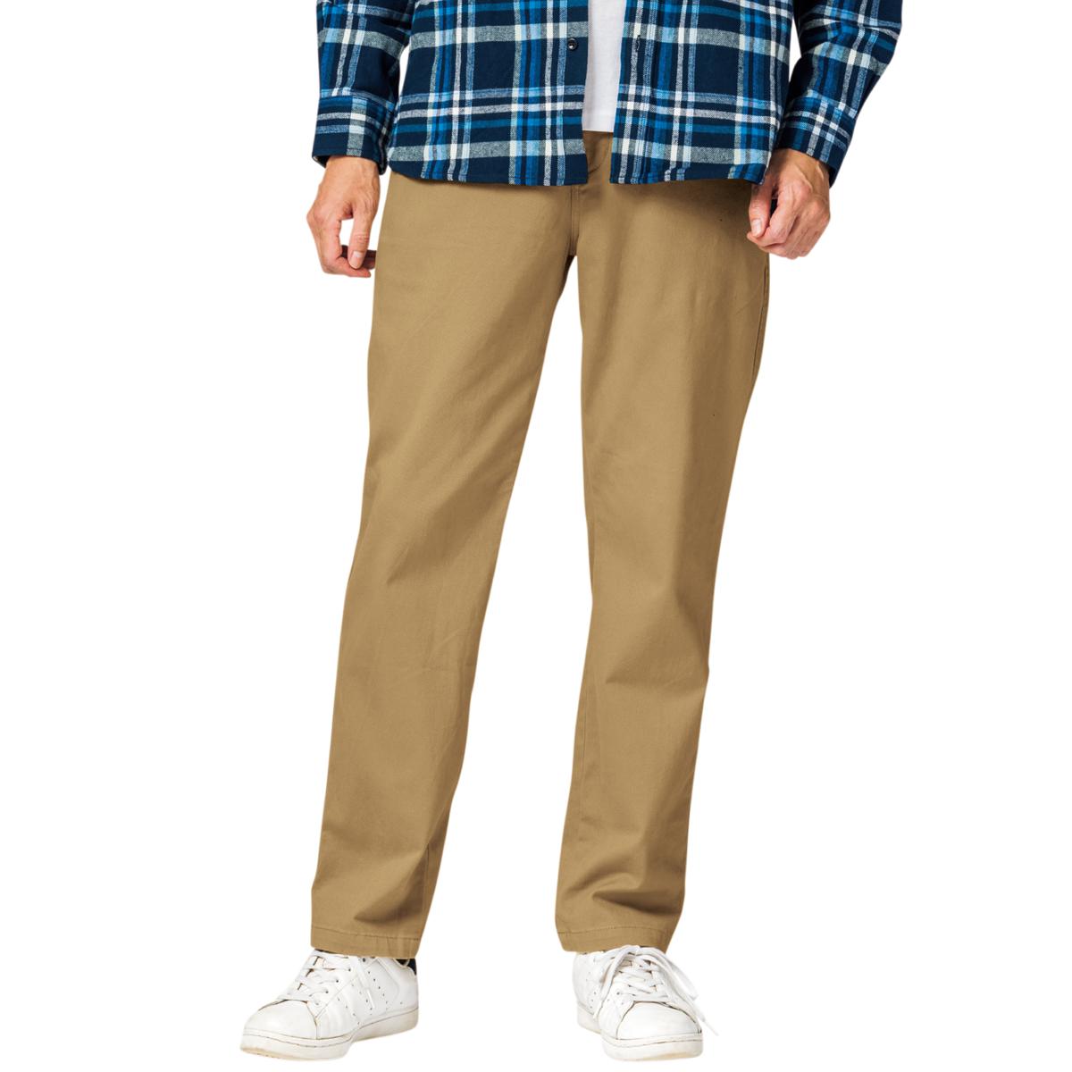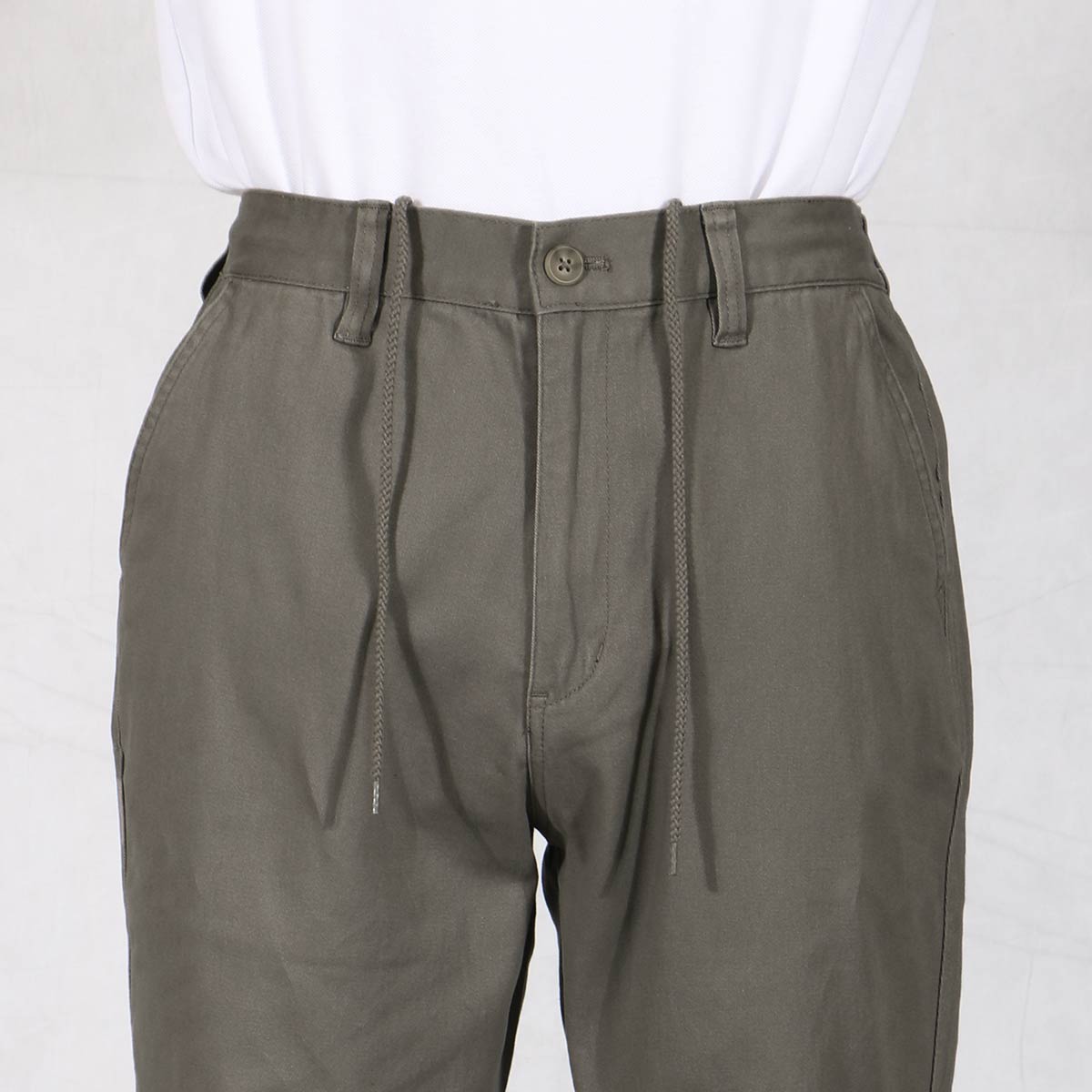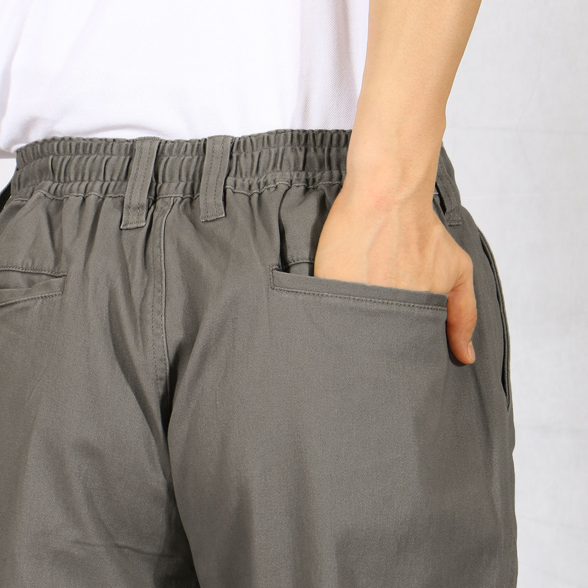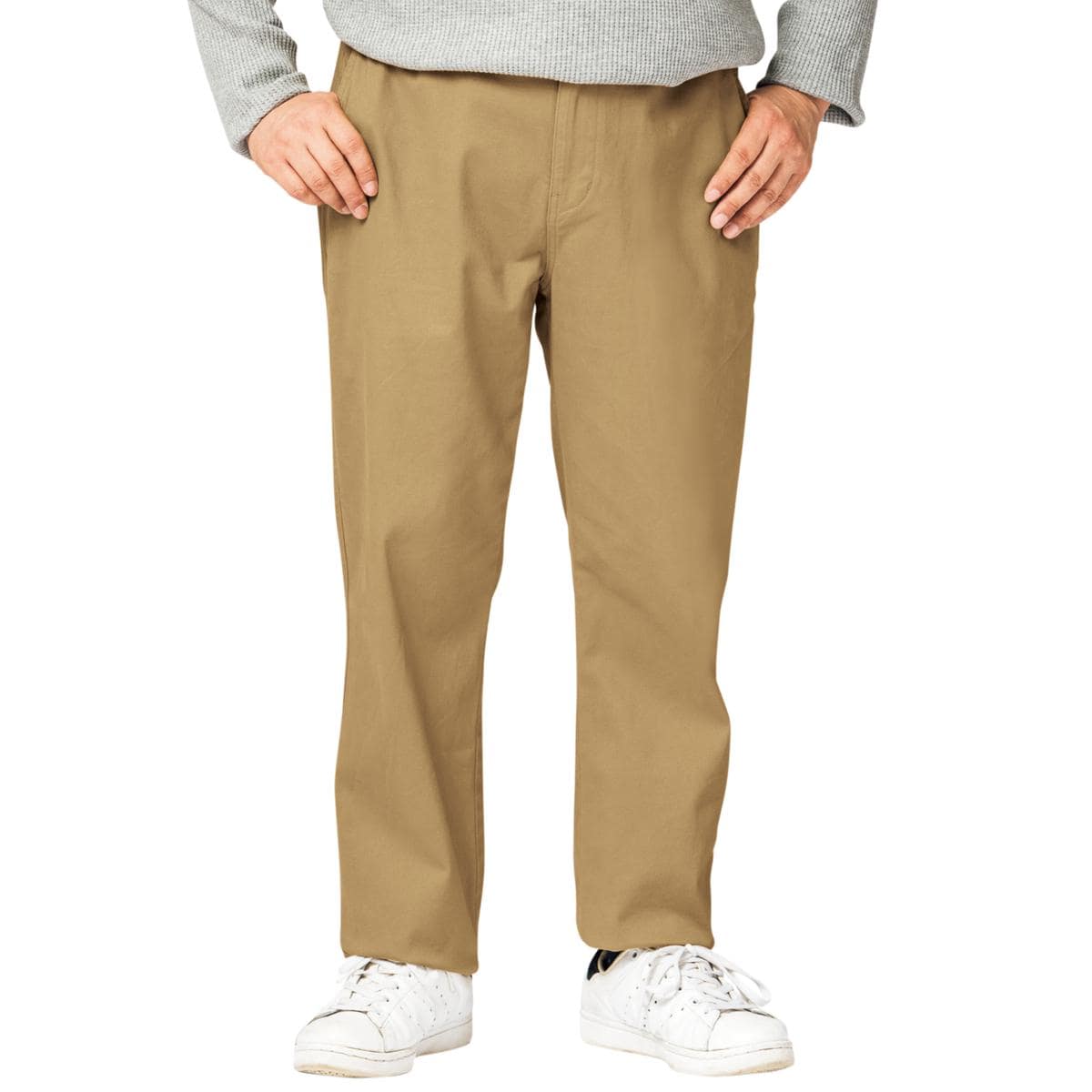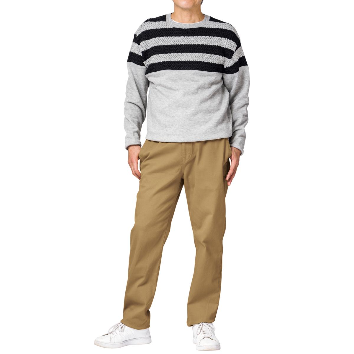 -お買い得ポイント-ストレッチが効いてはきやすいイージーウエストパンツです。-デザイン-「ヒップ周りゆったり、膝・裾はほどよくすっきり」なテーパードシルエットで、見ためしっかり、はき心地楽ちん。ウエスト内側にスピンドル(紐)を入れた仕様で微調整可能な上、前開きのデザインです。ウエストのシャーリング部分の内側にステッチを2本入れることで、ウエストのダブつきをおさえるようにしています。-素材特徴-しっかりとした厚みの20番ツイル素材で、ほどよい柔らかさの仕上げにしております。