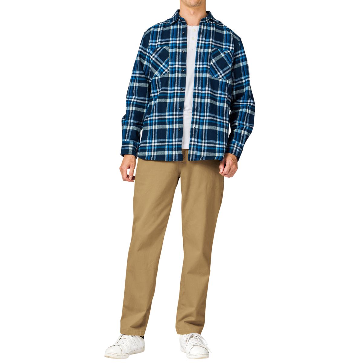 ■綿98%ポリウレタン2%(ツイル)●ウエスト前開き仕様●ウエストゴム&スピンドル仕様●前後左右ポケット【股下寸法を必ずご確認ください】▼独特の風合いと柔らかさを出すための洗い加工をしておりますので、1枚1枚の色・寸法に若干の差がございます●洗濯機OK●中国製、ミャンマー製*こちらの素材は、オールシーズン着用いただける、しっかりとした厚みとなっています。【ヨコストレッチ】 【股下2丈展開】(72・76cm) 【大きいサイズも展開】(~5L)