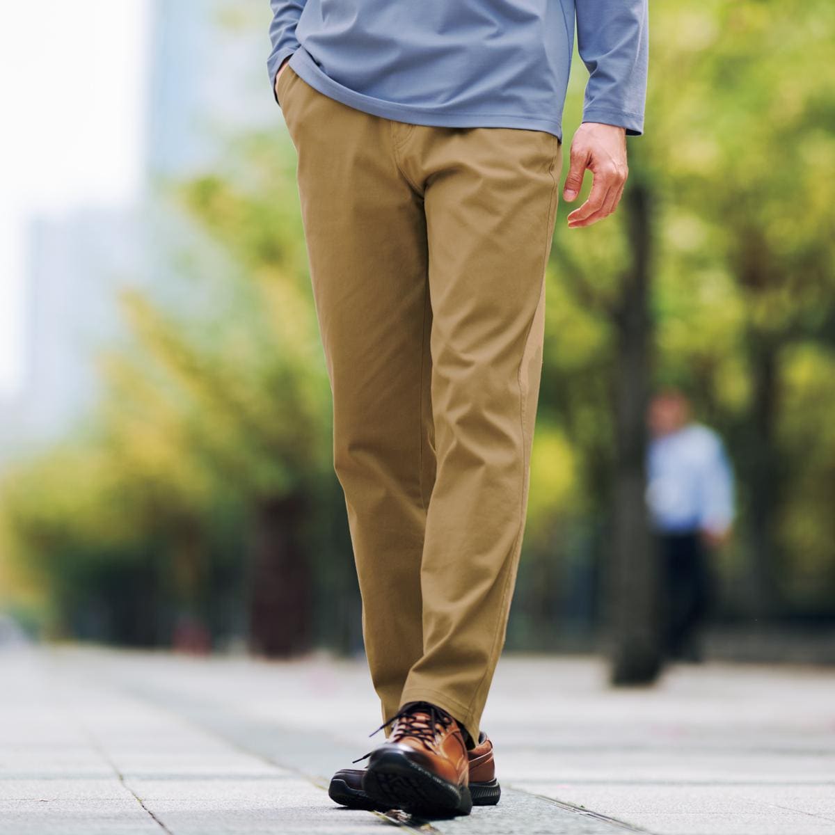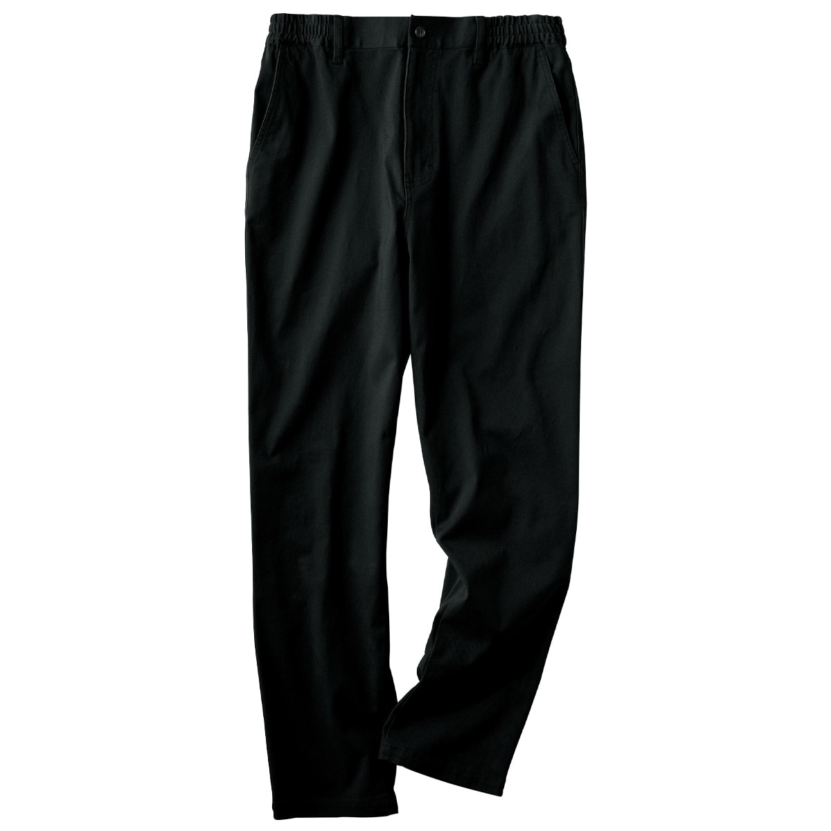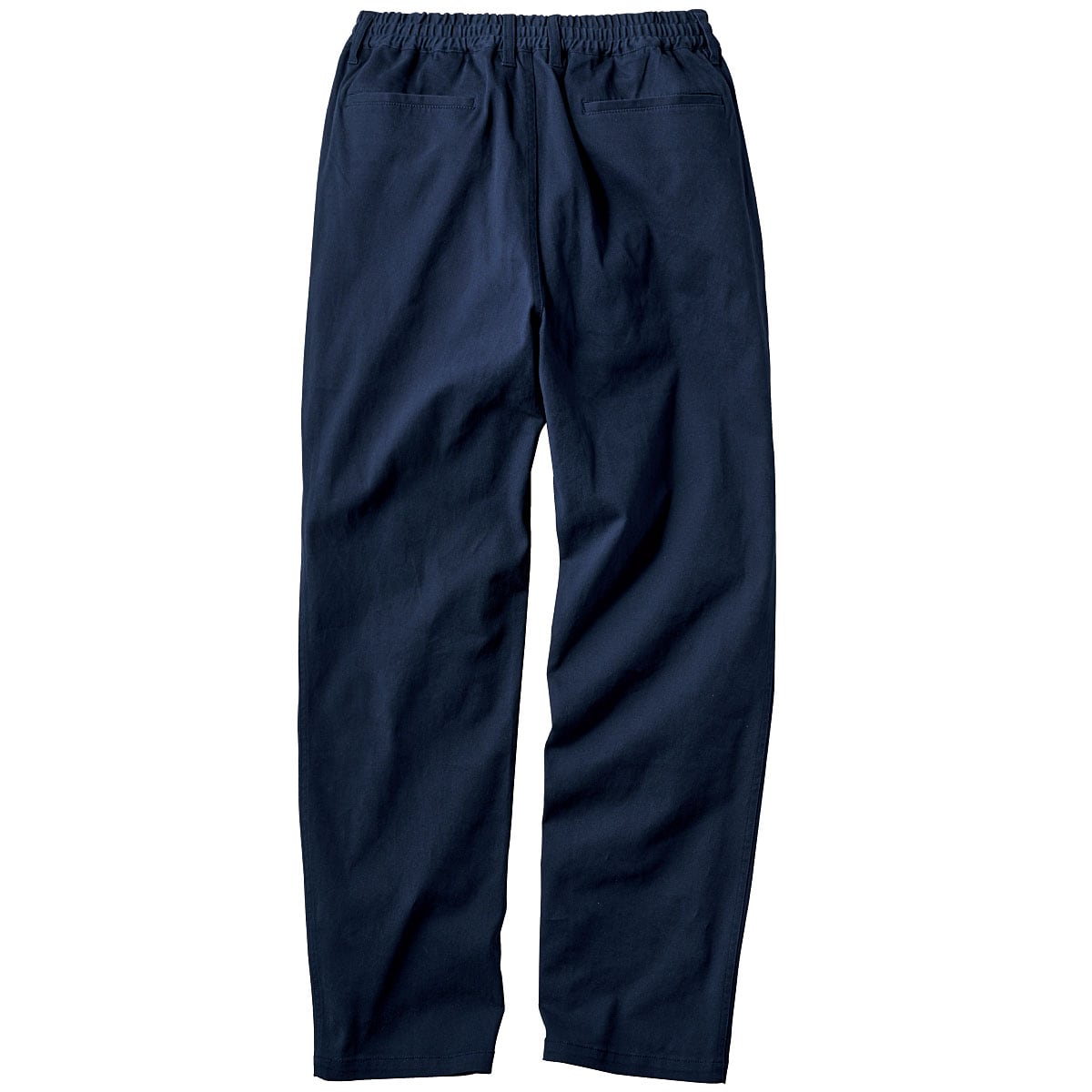 -お買い得ポイント-ストレッチが効いてはきやすいイージーウエストパンツです。-デザイン-「ヒップ周りゆったり、膝・裾はほどよくすっきり」なテーパードシルエットで、見ためしっかり、はき心地楽ちん。ウエスト内側にスピンドル(紐)を入れた仕様で微調整可能な上、前開きのデザインです。ウエストのシャーリング部分の内側にステッチを2本入れることで、ウエストのダブつきをおさえるようにしています。-素材特徴-しっかりとした厚みの20番ツイル素材で、ほどよい柔らかさの仕上げにしております。