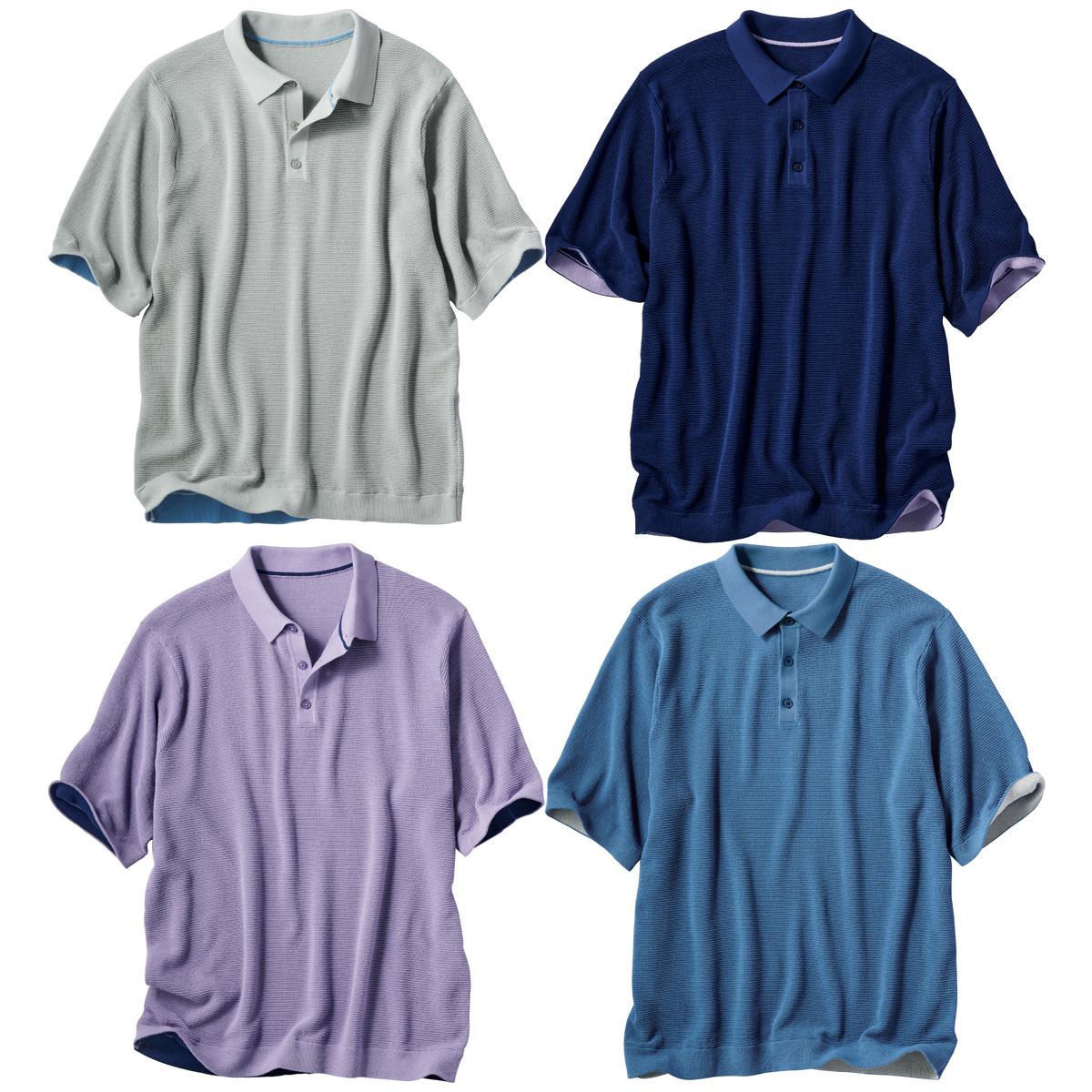 -お買い得ポイント-品のある表情は、きれいめパンツとあわせてビジネスにも、ジーンズやハーフパンツと合わせて普段着にも活躍します。-デザイン-きれいめに編み上げたニットポロ。衿裏・袖口裏・裾裏に配色仕様です。-素材特徴-着た瞬間にひんやりの「接触冷感」、強い紫外線から肌を守る「UVカット」、肌やインナーが「透けにくい」のタック天竺です。