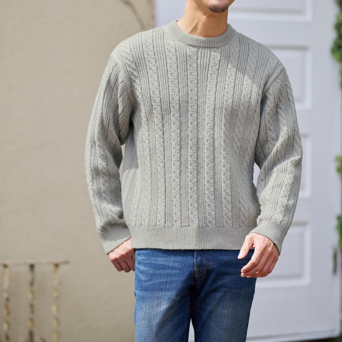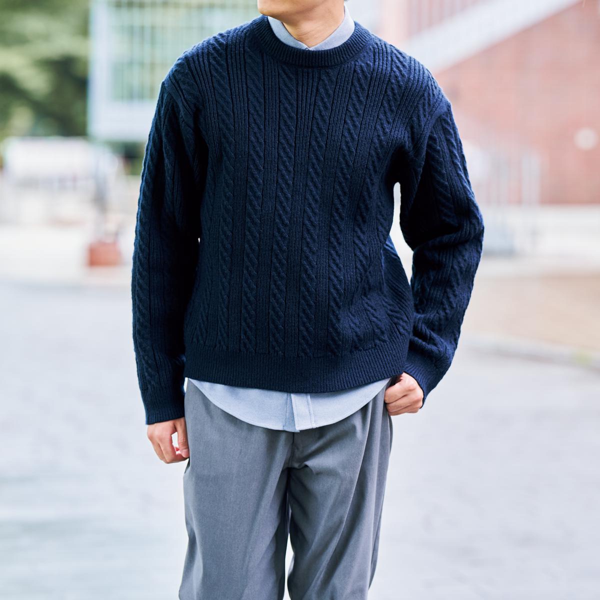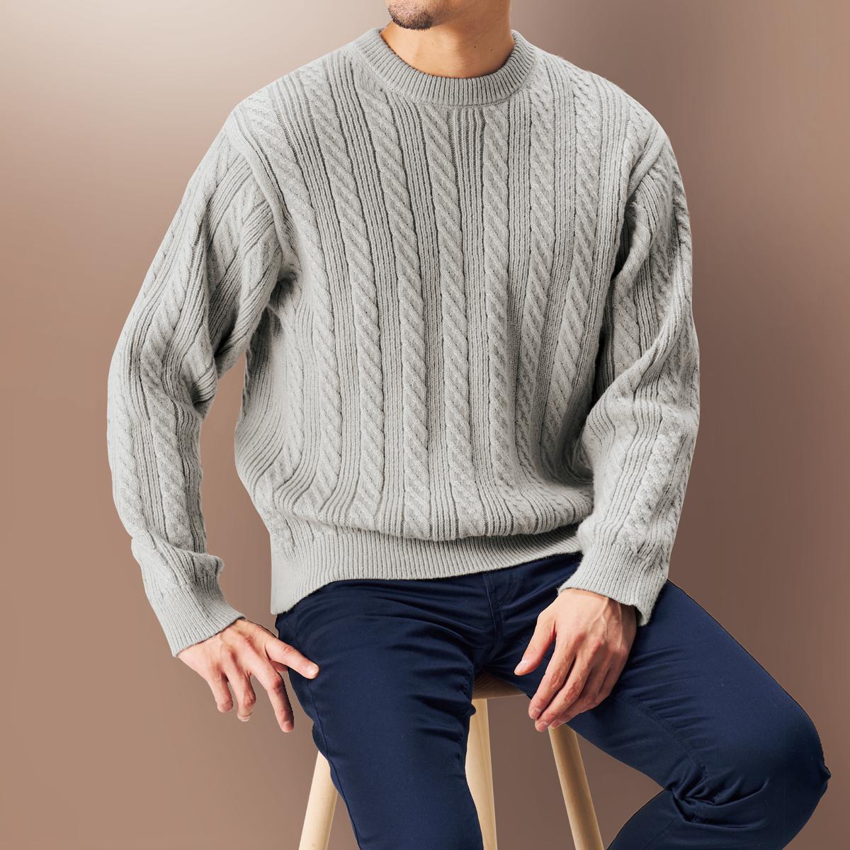 ぬくもり感たっぷりケーブルクルーネックプルオーバー