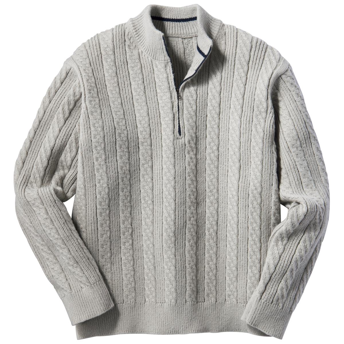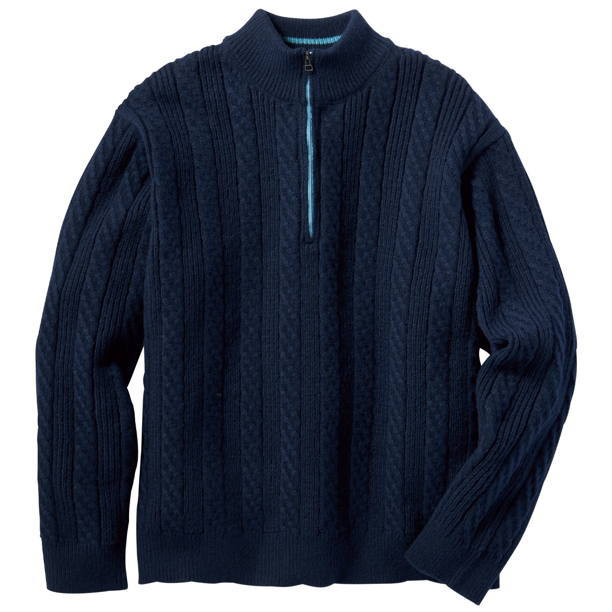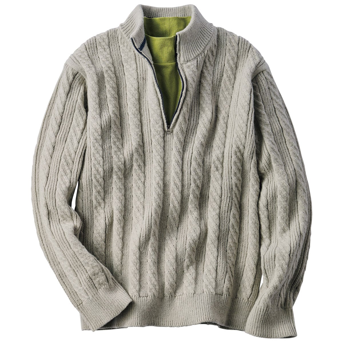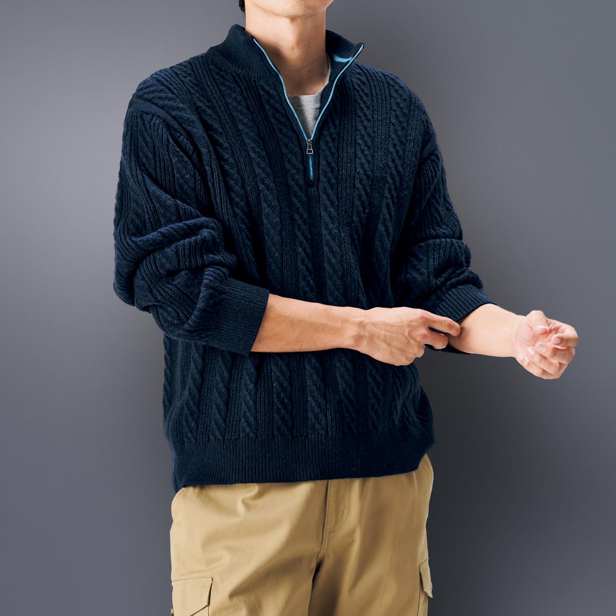 ジップ配色にもこだわりケーブルハーフジッププルオーバー