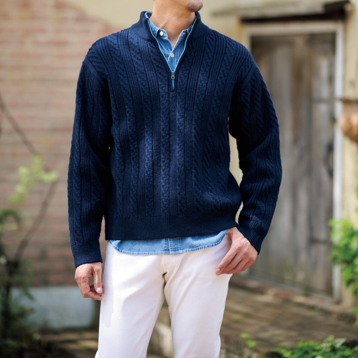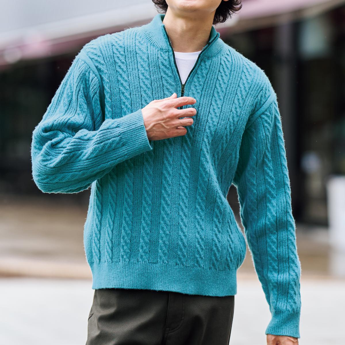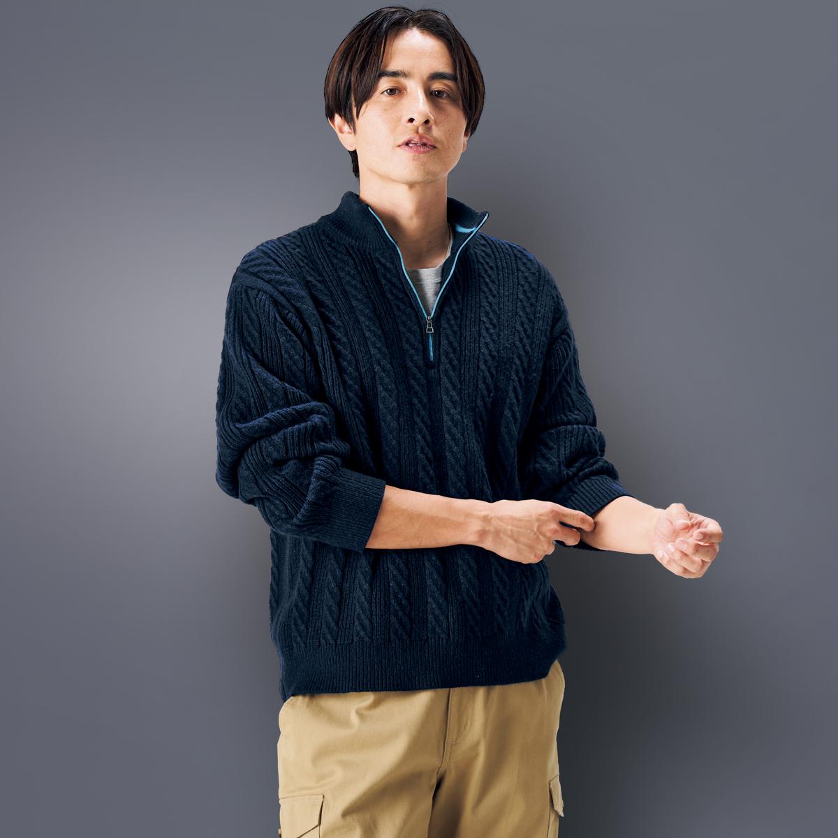 ジップ配色にもこだわりケーブルハーフジッププルオーバー