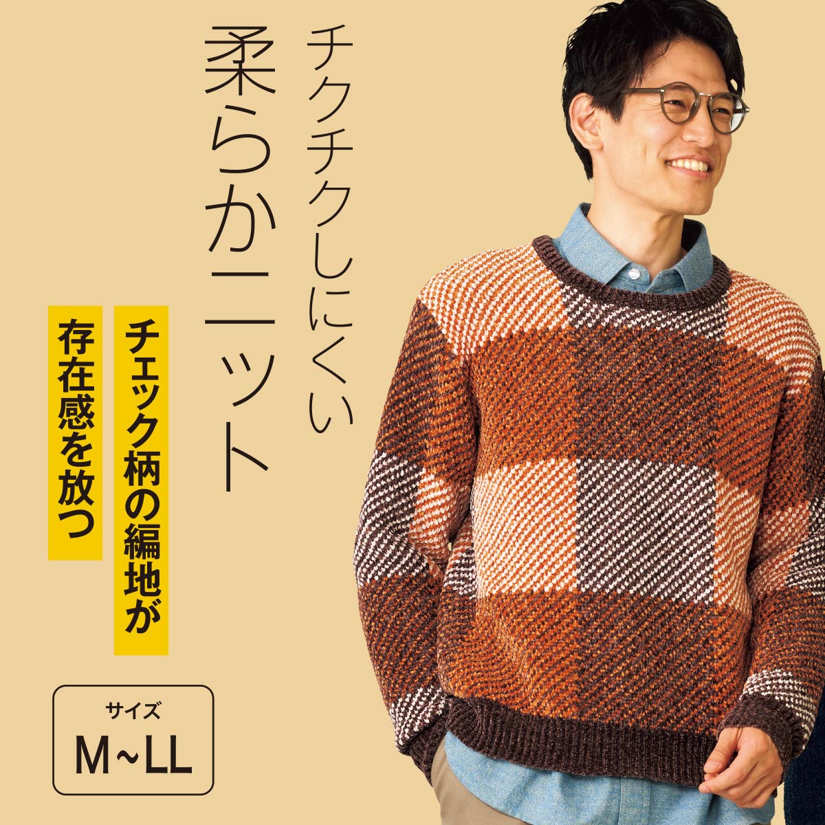 ツヤ感のあるモールニットをチェックでデザインした1枚です。