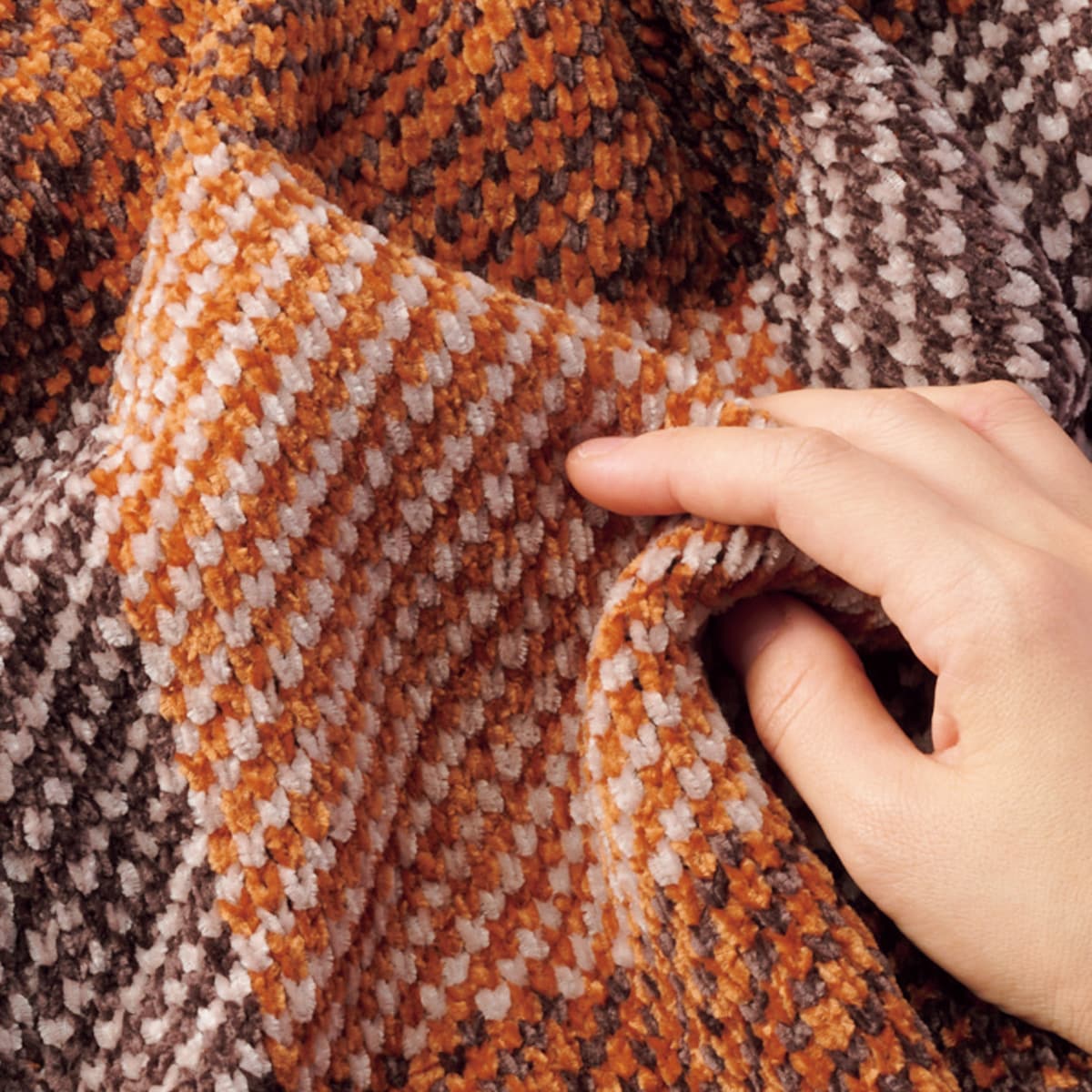 ツヤ感のあるモールニットをチェックでデザインした1枚。