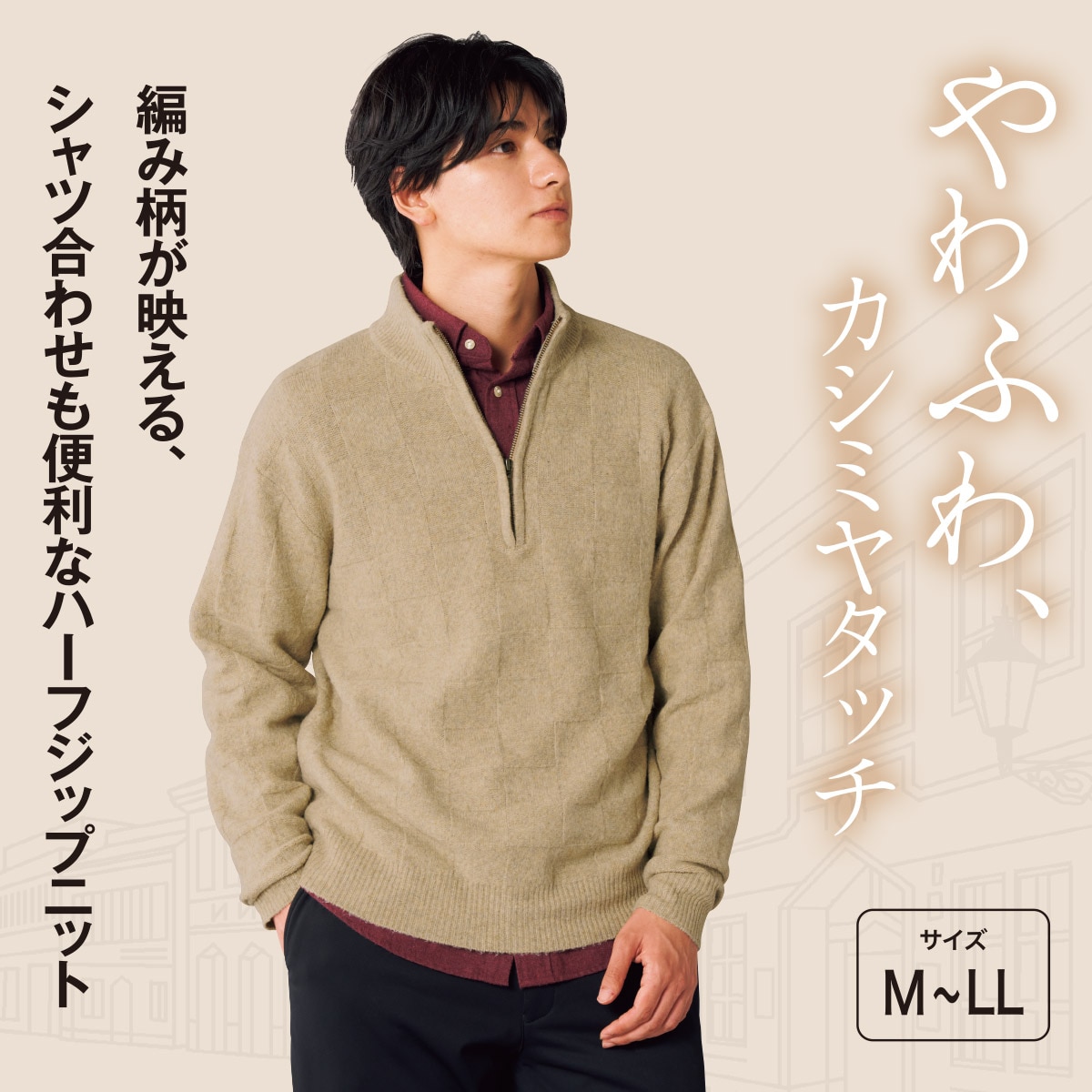 編み柄が映える、シャツ合わせも便利なハーフジップニット!