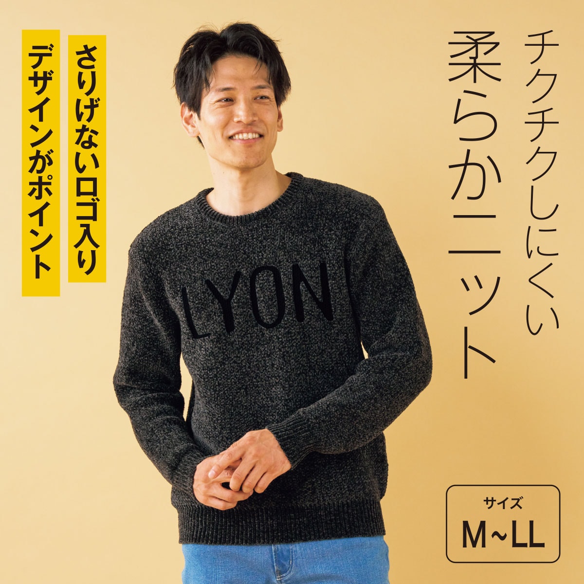 • モール糸ロゴ入クルーネックニット | ダークグレー