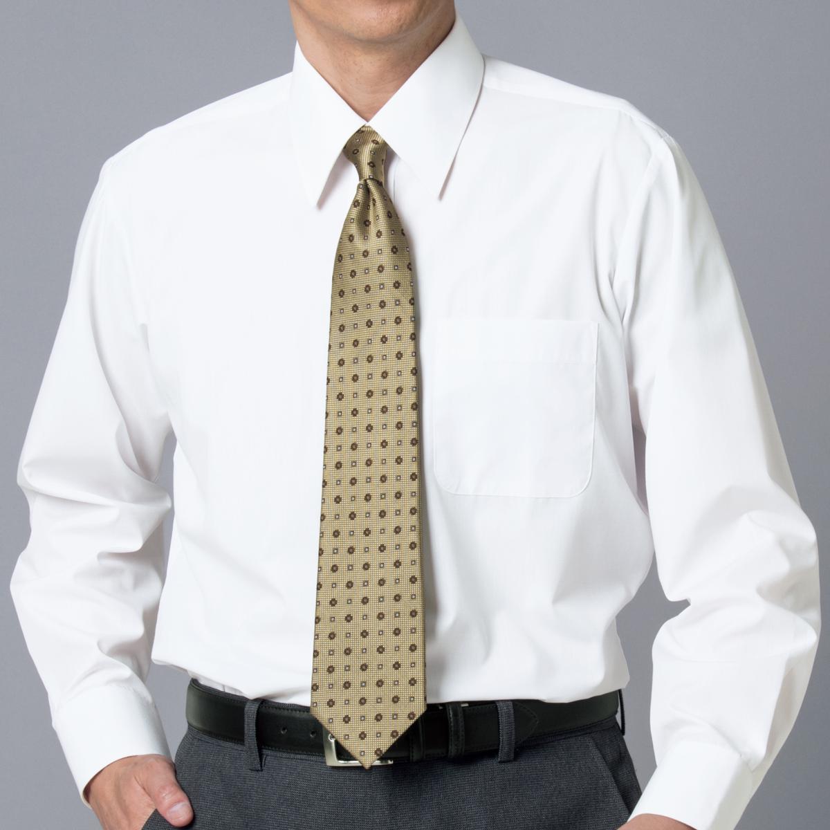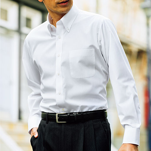 -お買い得ポイント-ビジネスのマストアイテムとして何枚あっても便利なYシャツ。お手入れも簡単な形態安定機能付き。-デザイン-「レギュラー衿」、「ボタンダウン衿」と大定番の2種類をご用意。柄は白とストライプより選べます。腕や肩が動かしやすいよう背中にタックが入っています。シンプルデザインだから幅広い年代層に対応できるYシャツです。-素材特徴-洗濯機で洗えて、形態安定加工を施しているので、シワになりにくくノーアイロンで着られます。