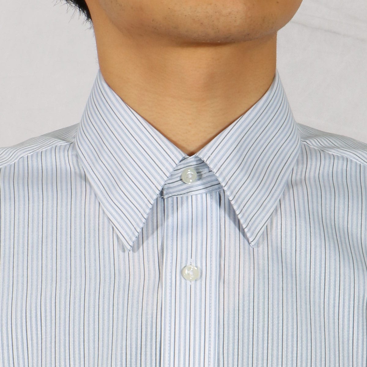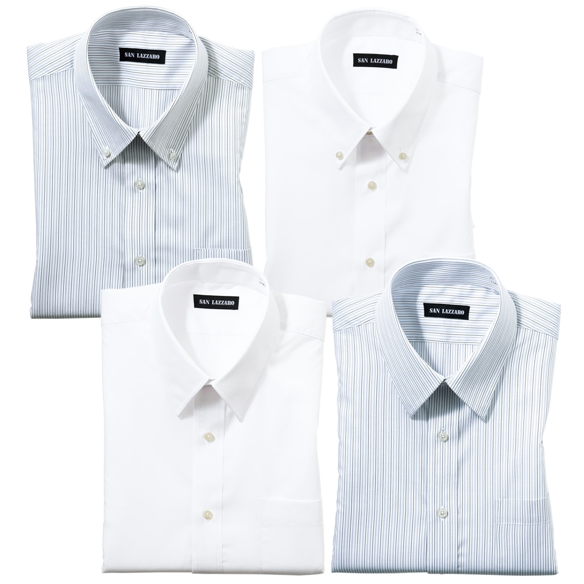 -お買い得ポイント-ビジネスのマストアイテムとして何枚あっても便利なYシャツ。お手入れも簡単な形態安定機能付き。-デザイン-「レギュラー衿」、「ボタンダウン衿」と大定番の2種類をご用意。柄は白とストライプより選べます。腕や肩が動かしやすいよう背中にタックが入っています。シンプルデザインだから幅広い年代層に対応できるYシャツです。-素材特徴-洗濯機で洗えて、形態安定加工を施しているので、シワになりにくくノーアイロンで着られます。
