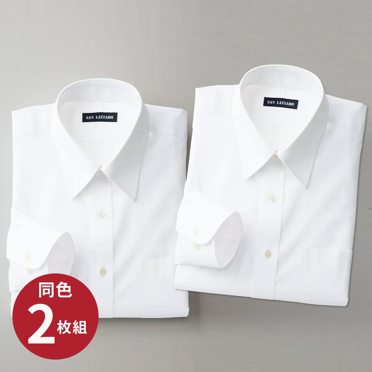 格!洗い替えに便利な2枚組の形態安定Yシャツ。ホワイトA(レギュラー衿) 同色2枚組