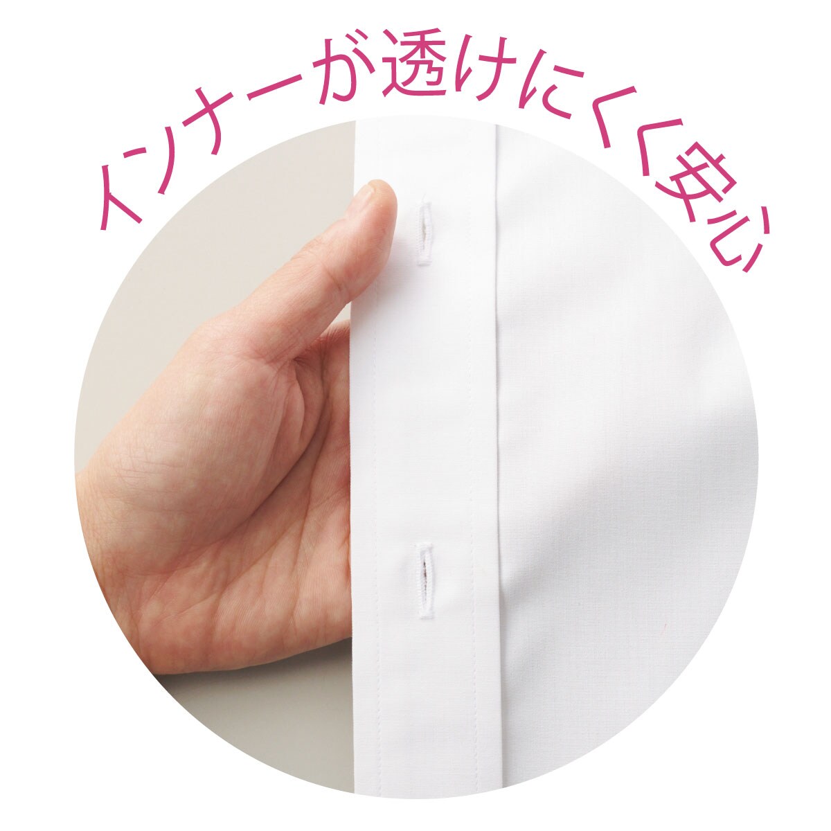 白無地は肌や下着の透けが気になるというお悩みを受けて、透けにくい糸を使用し、白無地でも透けにくくなりました。
