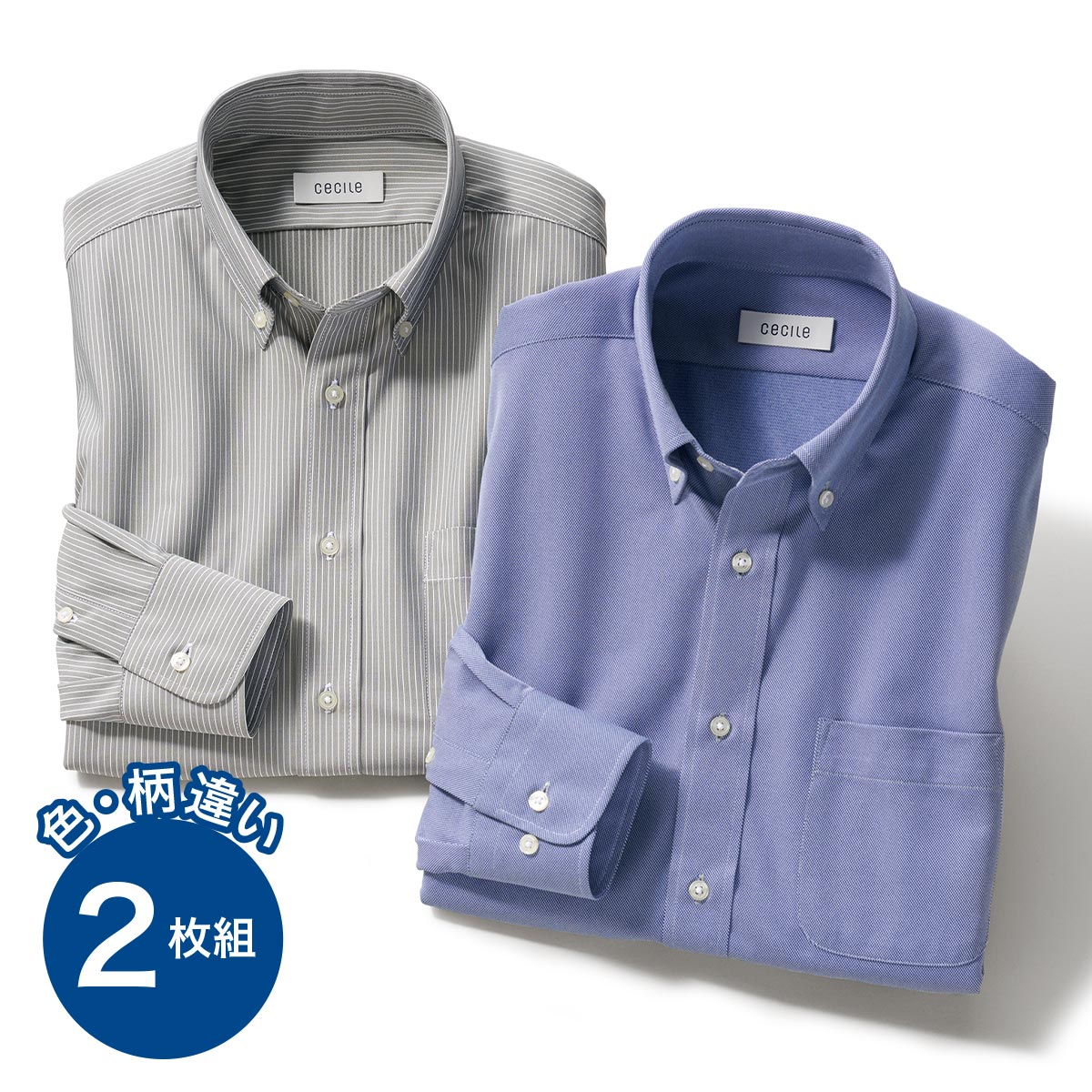 これを買っておけば、オフィス・カジュアル共に間違いなし!肌にやわらか日本製生地ストライプ柄とオックス風無地の2枚組は、使い回しに便利です。