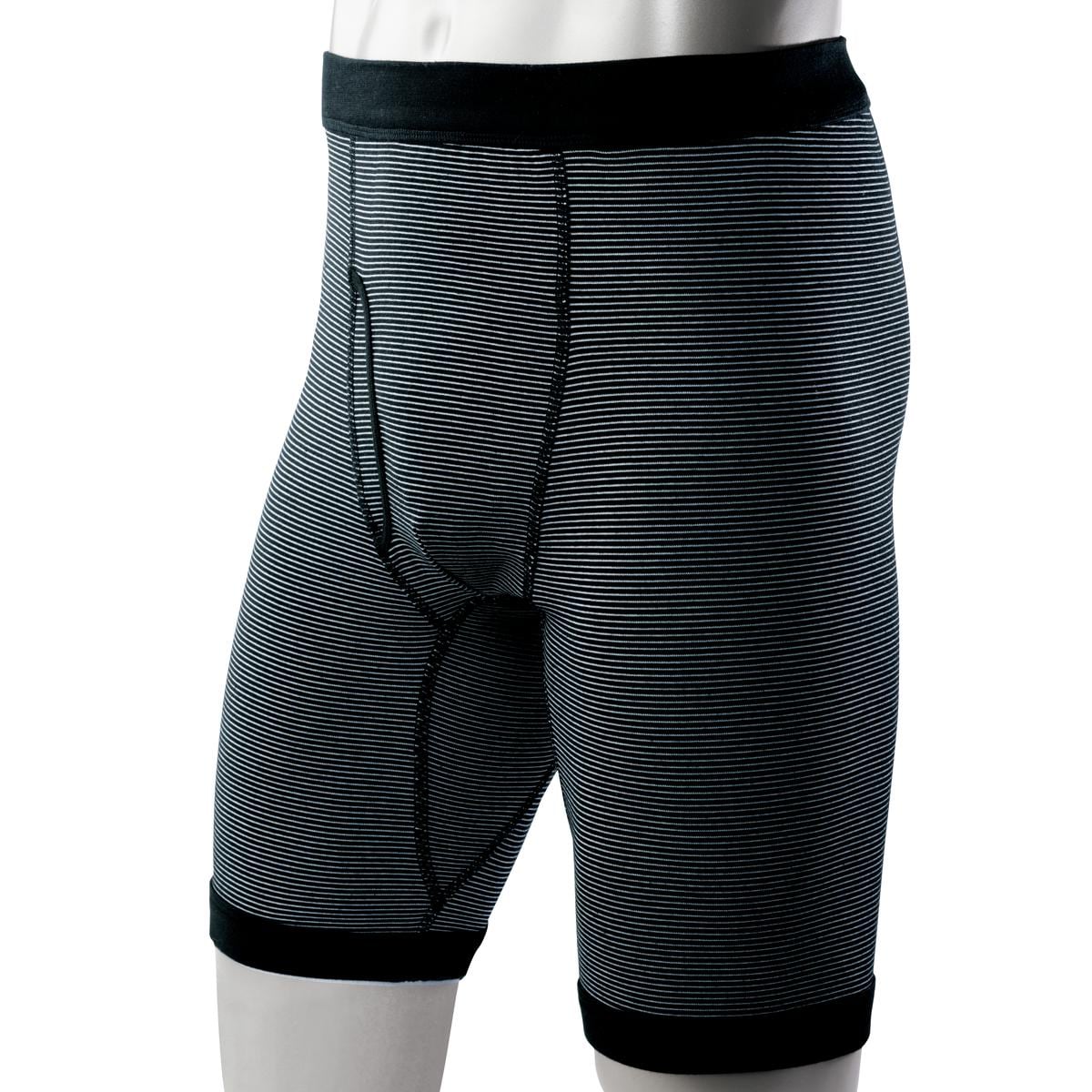 太ももの汗対策におすすめの綿混ロングボクサーブリーフ。ウエストはゴムではなく伸縮性のある生地で圧迫感と肌への負担を軽減♪