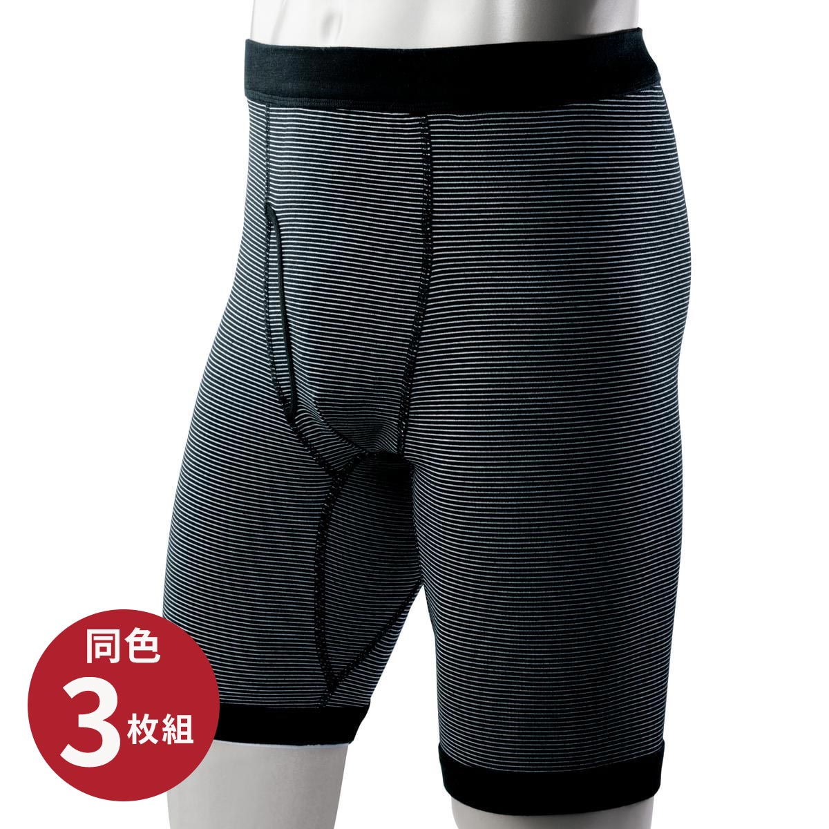 ロングボクサーブリーフ【同色3枚組・前開き】