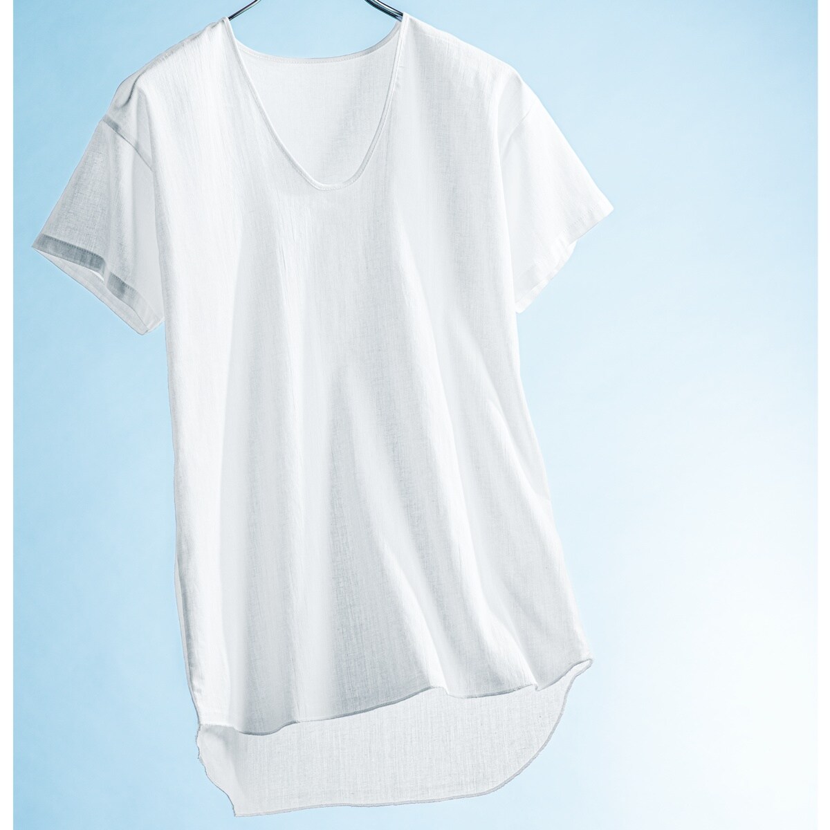 -お買い得ポイント-夏の肌にシャリッとした心地よさが魅力の半袖U首2枚組です。-デザイン-クルーネックよりもネックラインの開きが深く、マイルドさを感じさせてくれるのが特徴。首元が空いていることで、首を長く見せて小顔に見せてくれる効果が期待できます。-素材特徴-やっぱり夏はこれ!凹凸感のある綿100%クレープ素材が肌にはりつかず、サラサラな肌ざわりで涼やか。日本の気候に合った昔ながらのこの素材が、今改めて見直されています。