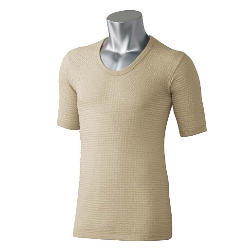 セシールロングセラー男のあったかリップルインナー半袖Uネック