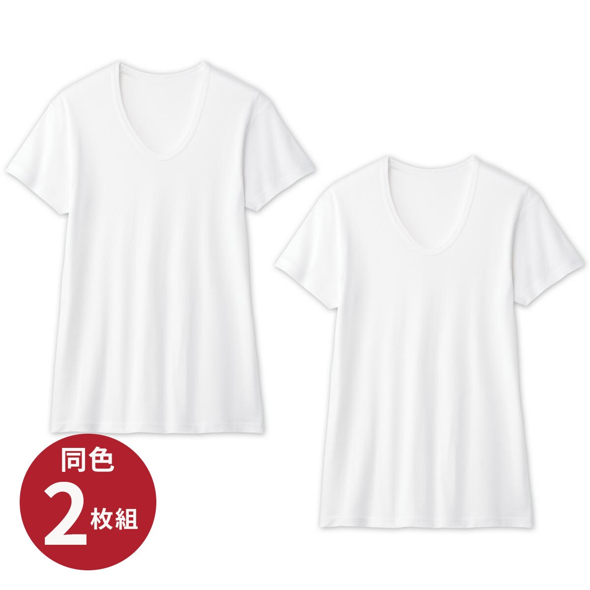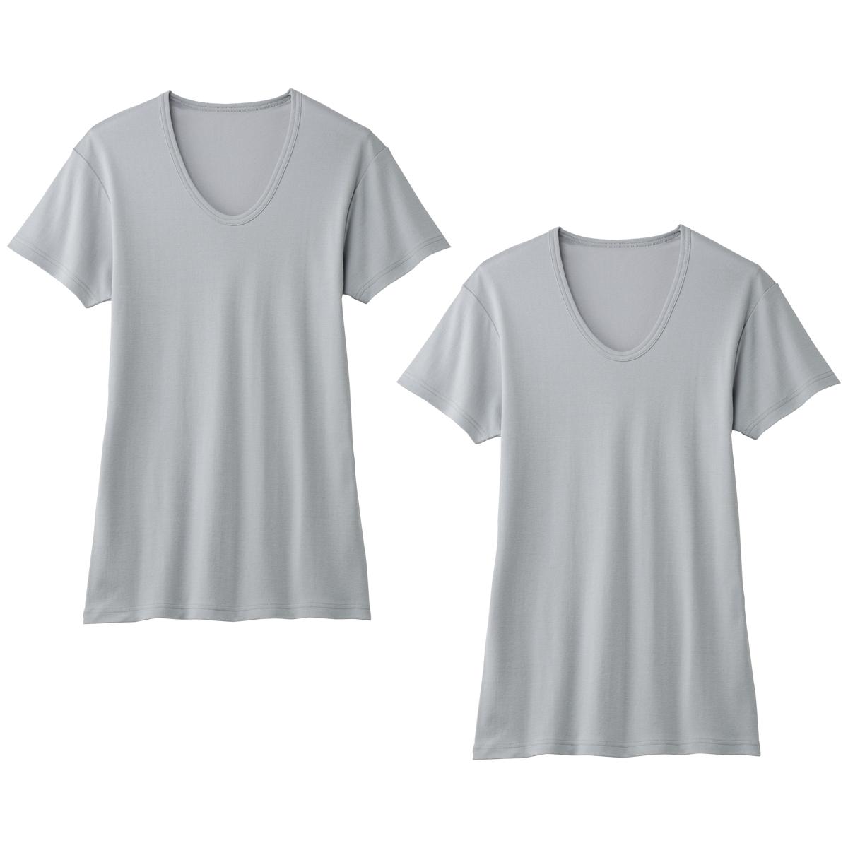 -お買い得ポイント-消臭加工付きだからいつもさわやか、何枚あっても重宝します。やわらかなタッチをお試しください。-デザイン-首元が広めに開いたUネックで涼しく着やすい。同色2枚組なので洗い替えにも便利です。-素材特徴-肌にやさしい綿100%フライスで仕上げた半袖Uネックインナー