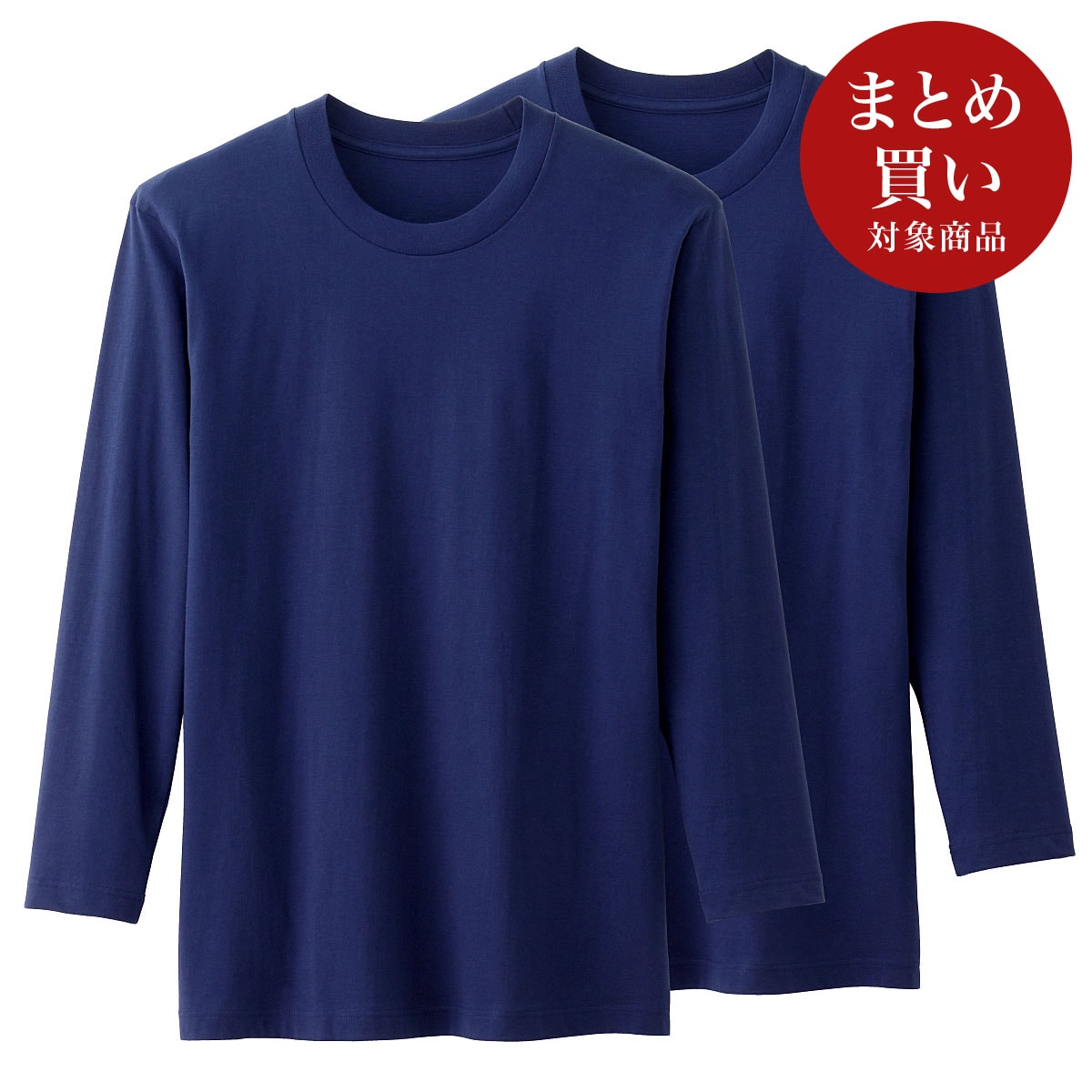 綿100%のクルーネックタイプの長袖Tシャツ同色2枚組。