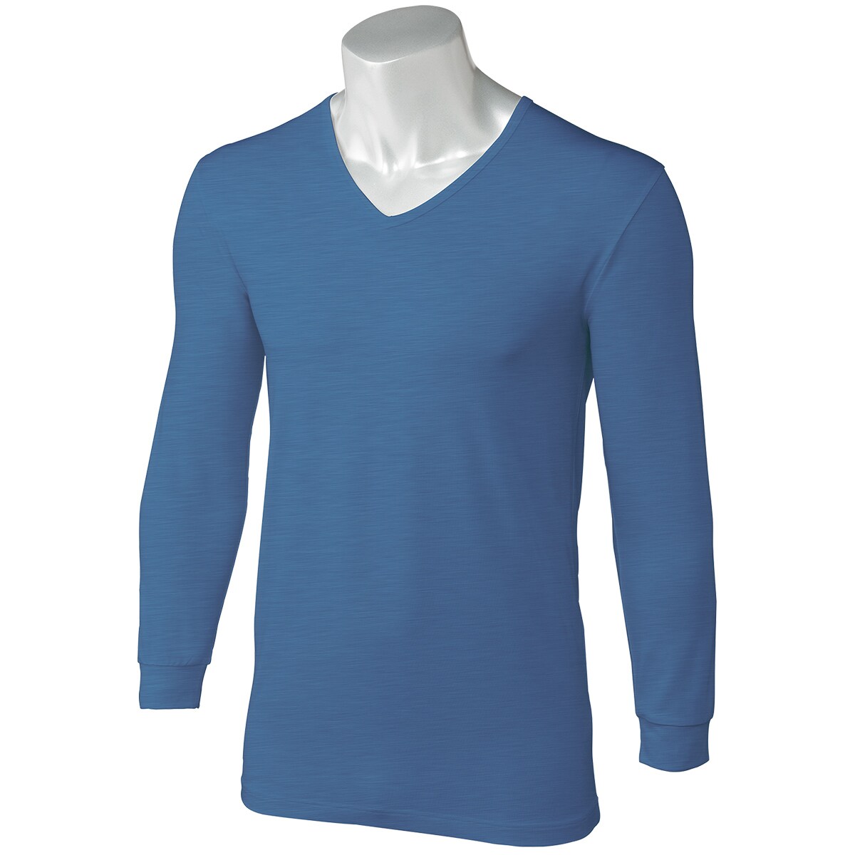 【Smart Heat®】吸湿発熱・保温・抗菌防臭・速乾など快適機能満載の「スマートヒート®」。シャツから袖口が出にくい9分袖のVネック!