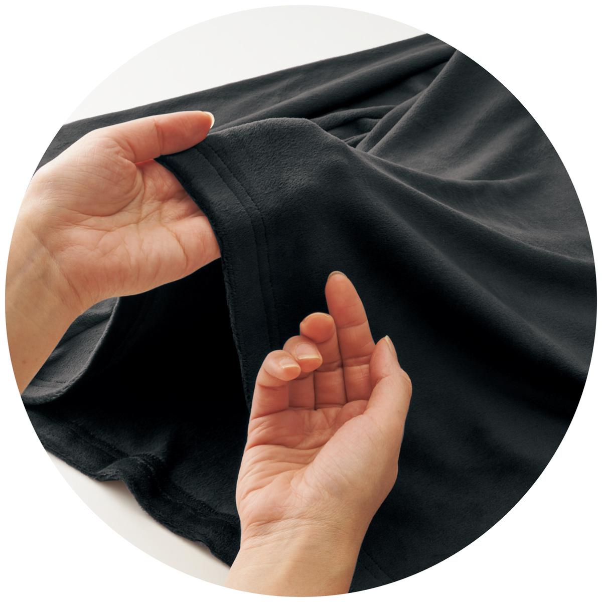 (肌側)(表側)厚地のベロア調素材は暖かみのあるなめらかな肌ざわり。