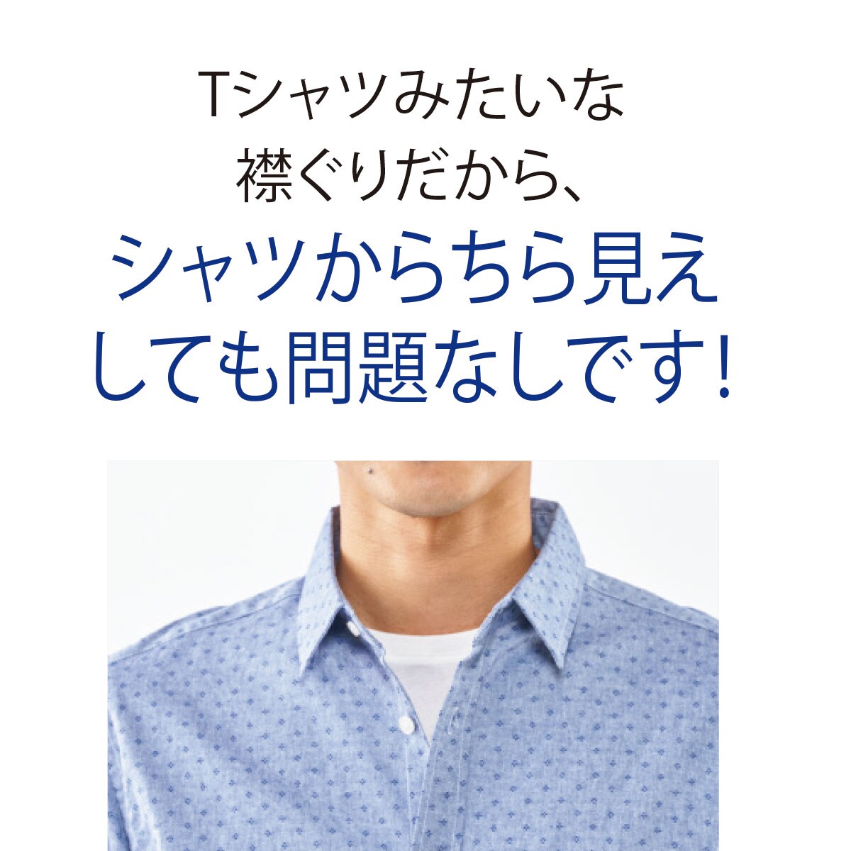 Tシャツみたいな襟ぐりだから、シャツからちら見えしても問題なしです!