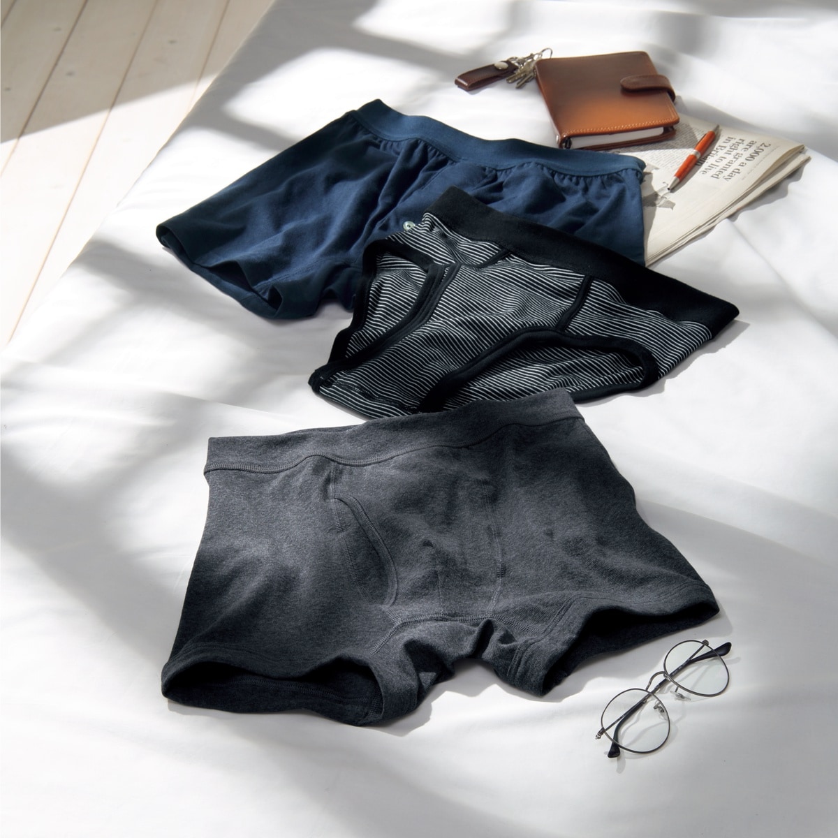 やわらかい肌触りが快適なニットトランクス(3枚組・前開き)。