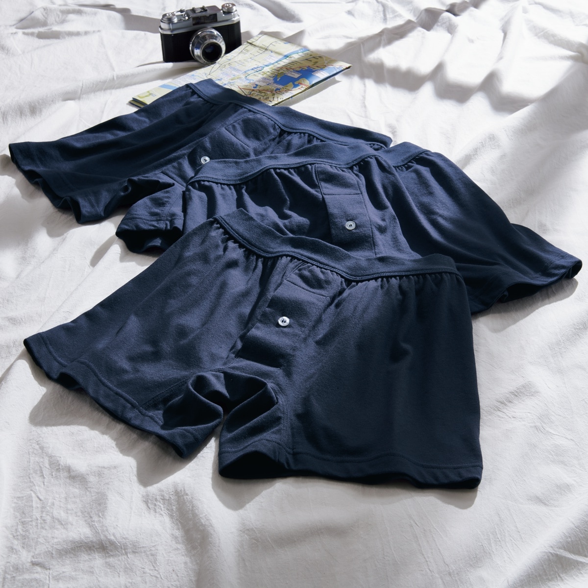 やわらかい肌触りが快適なニットトランクス(3枚組・前開き)。