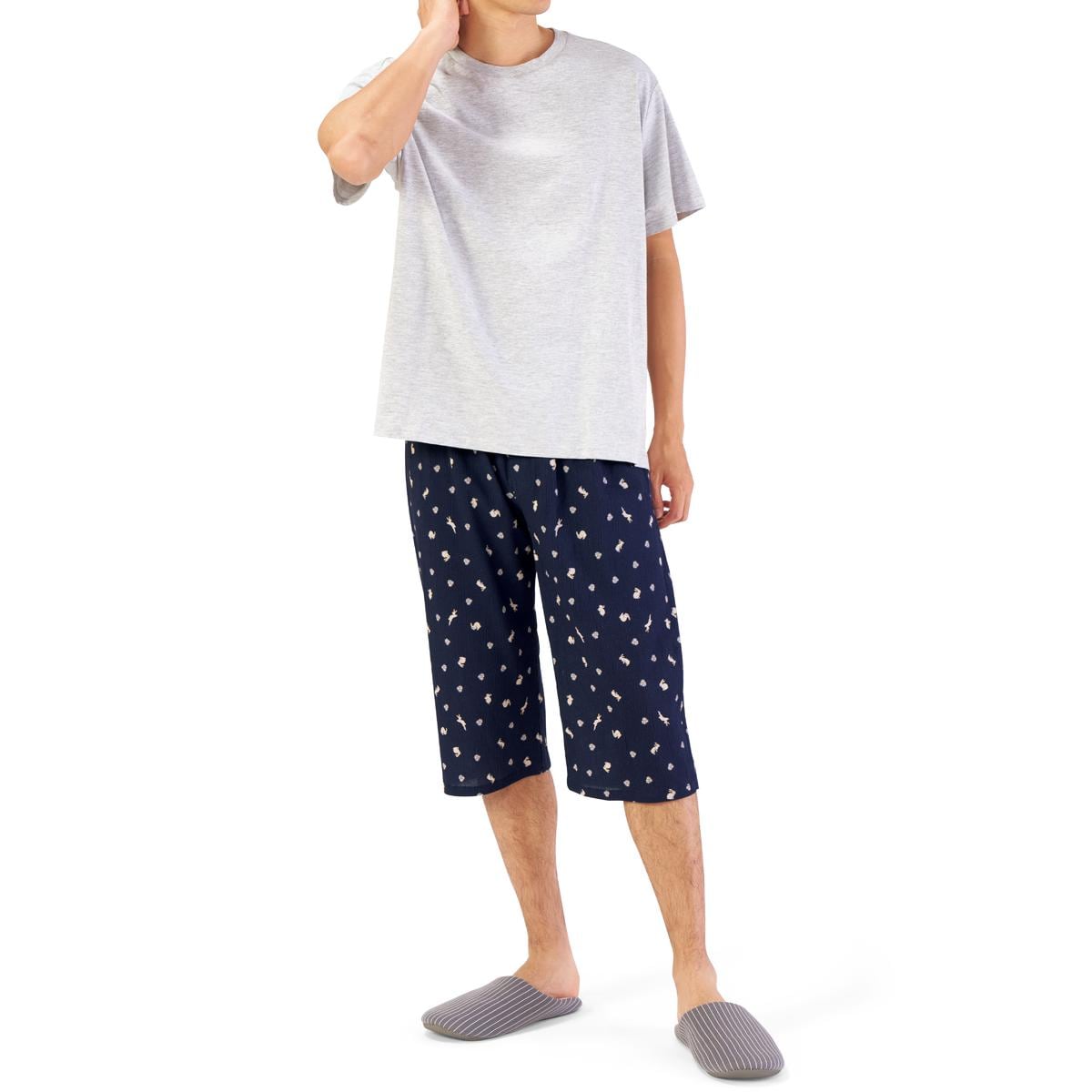 -お買い得ポイント-独特のシボが肌に心地よく、着心地も快適な楊柳素材のテコパン・7分ロンパン。-デザイン-ベーシックなデザインから個性を感じさせる和柄まで取り揃えた5柄展開。粋なリラックスウエアとして最適なアイテムです。-素材特徴-表面にシボ感があり風通しのよい楊柳。