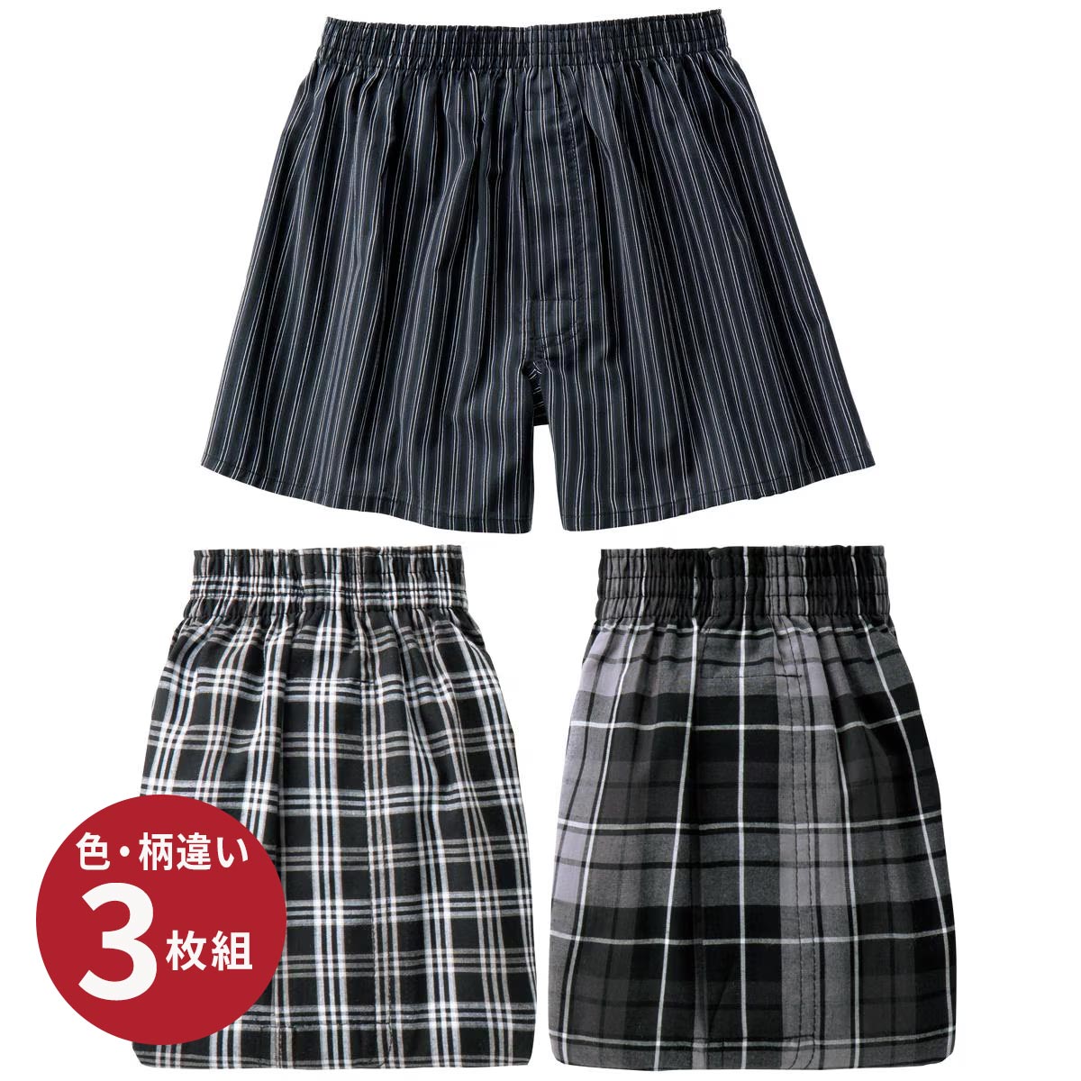 先染めトランクス(柄違い3枚組)
