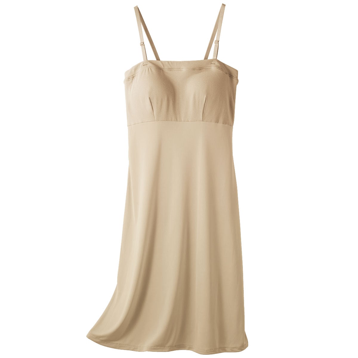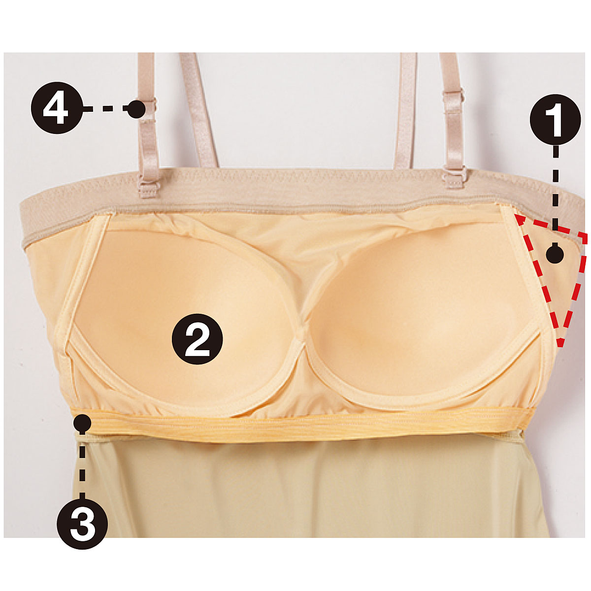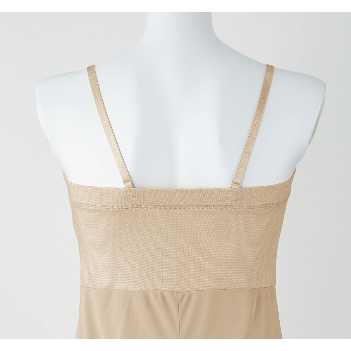 ブラ内蔵スリップだから、ブラいらず1枚で便利。ブラのストラップとの重なりやズレが気になりません。 シェルベージュ