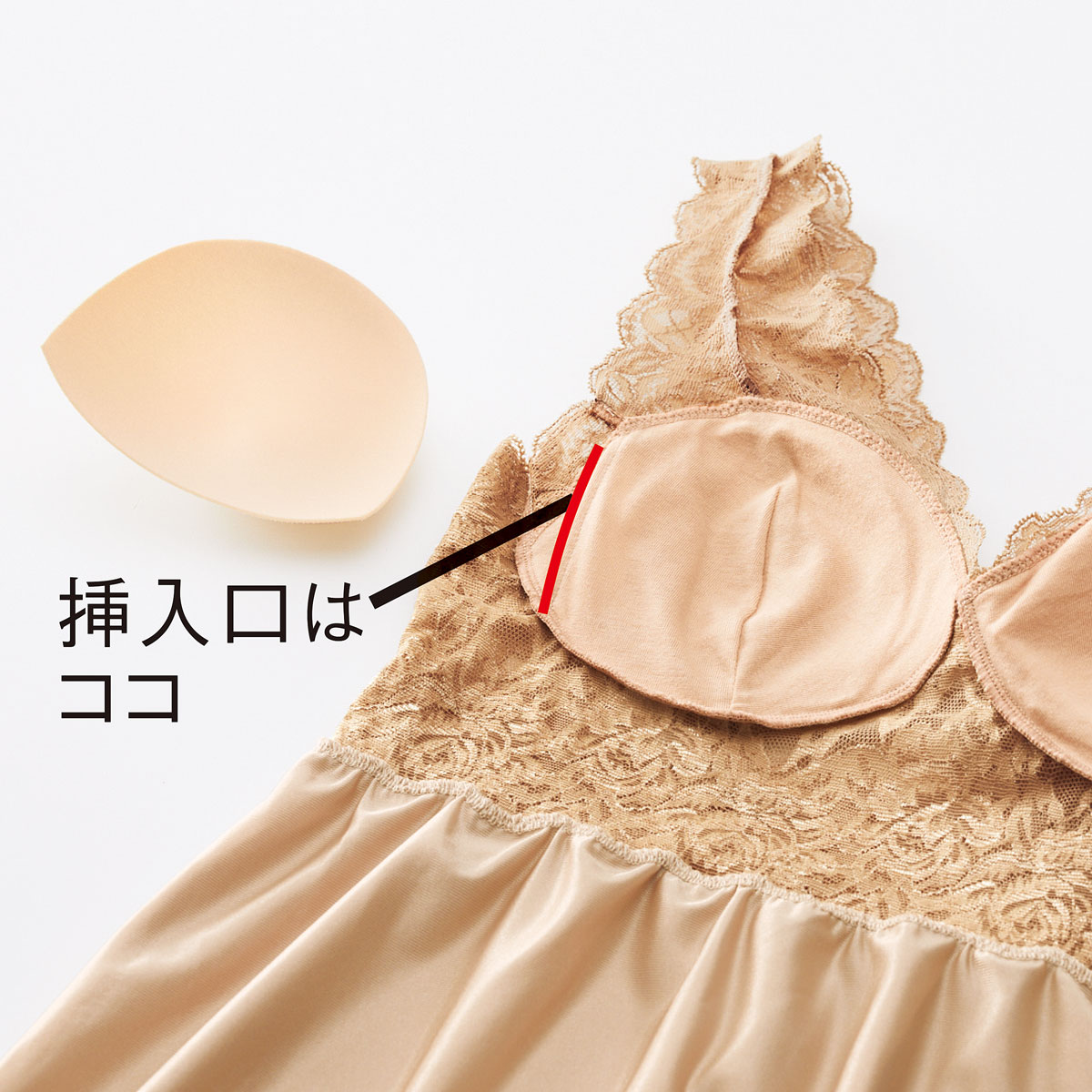 レース使いパッド付きスリップ