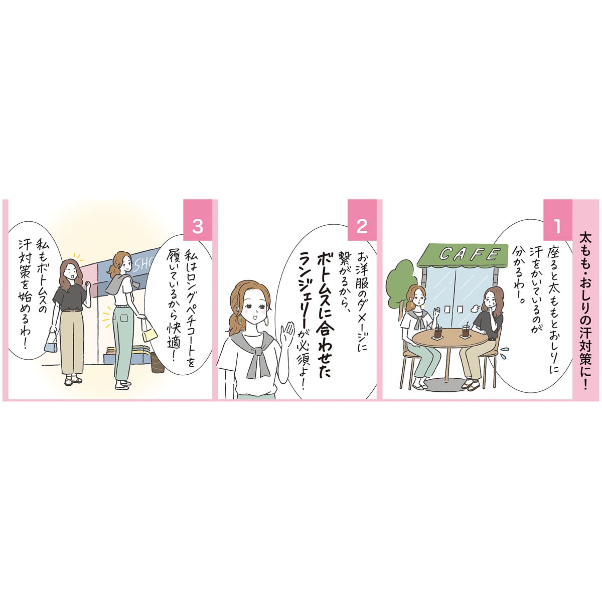 ボトムスに合わて選べるセシールのVega®シリーズなら透けや汗の対策もばっちり!