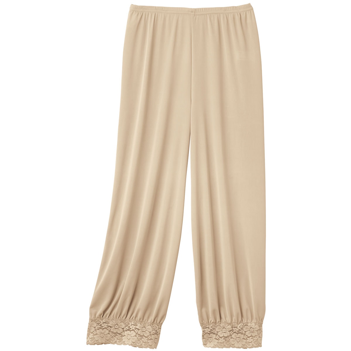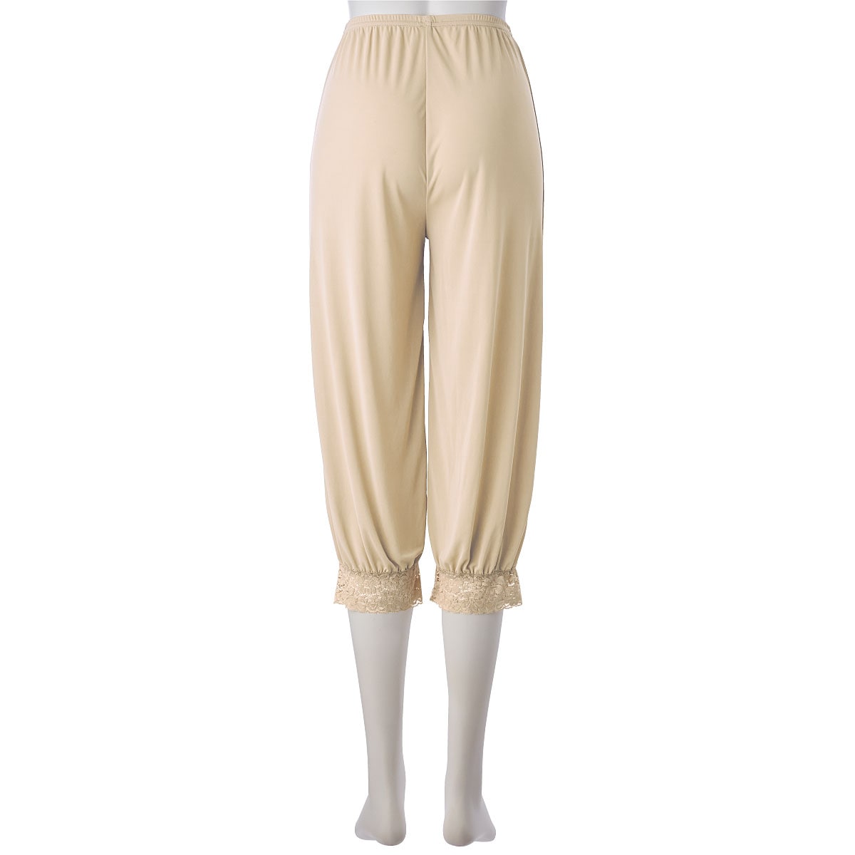 ペチコート裾の幅広ストレッチレースごとパンツの裾をくるくる巻き上げればOK。