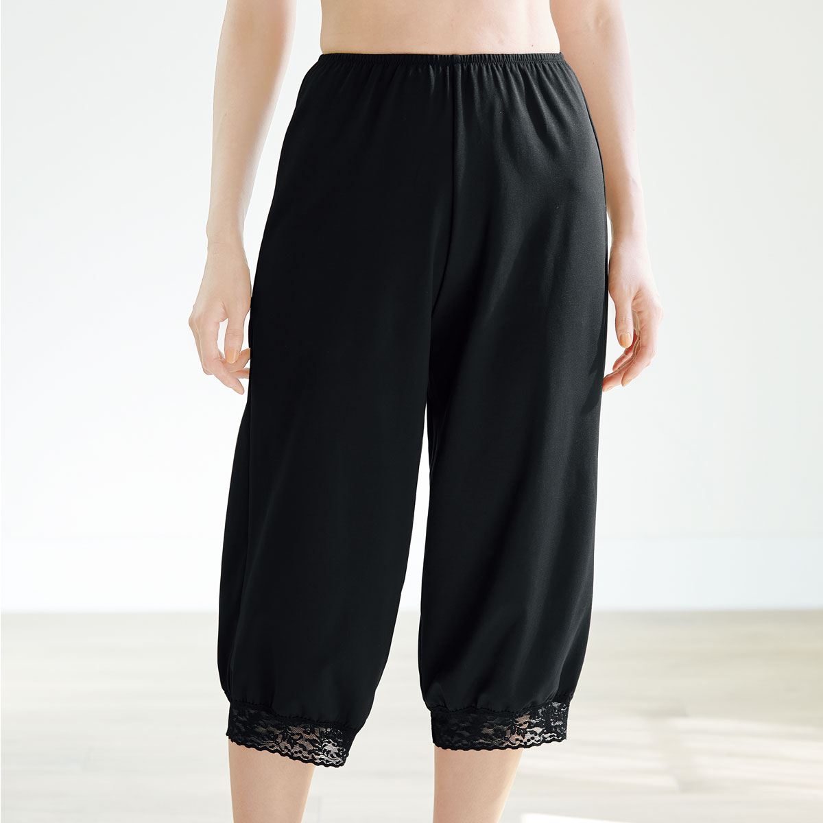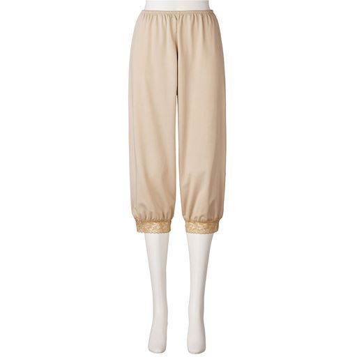 裾は幅広ストレッチレース仕様。ロールアップした状態をキープして汚さない。