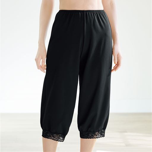 やわらかな裏起毛素材を使用したロールアップもできるあったかロングキュロットペチコートブラック(75cm丈)着用例