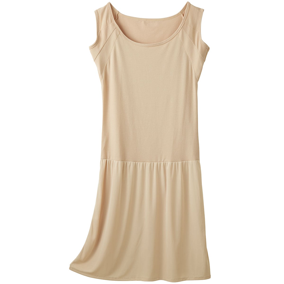 ワキ汗や背中の汗対策に!「前汗キャッチャー®」の機能をプラスした前汗取り付きノースリーブ切替スリップ。シェルベージュ