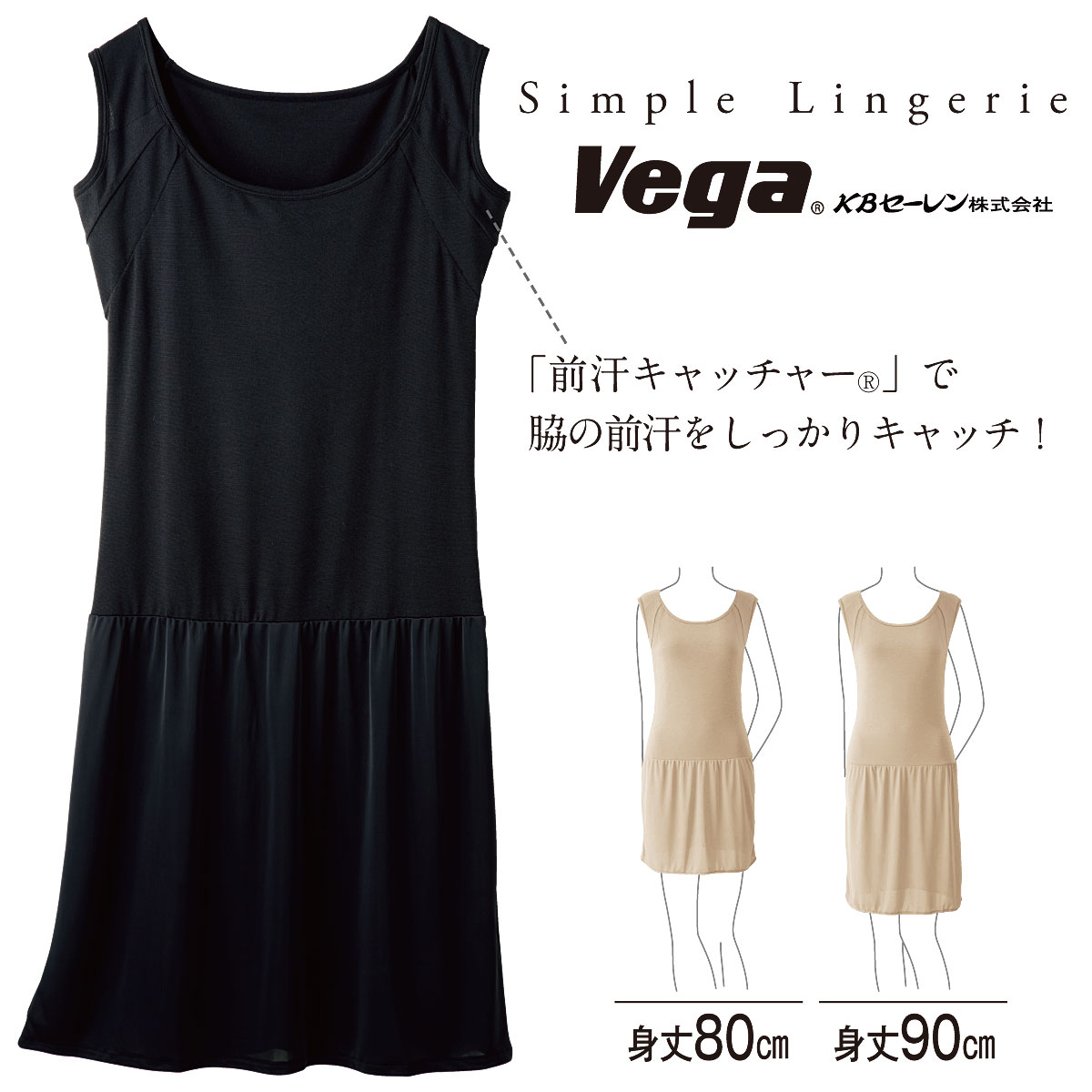 とろみのあるシルキーな肌ざわりと上品な光沢感が魅力の前汗取り付きノースリーブ切替スリップ。前に染み出す汗対策で人気の「前汗キャッチャー®」の機能をプラスしたランジェリーです。ブラック