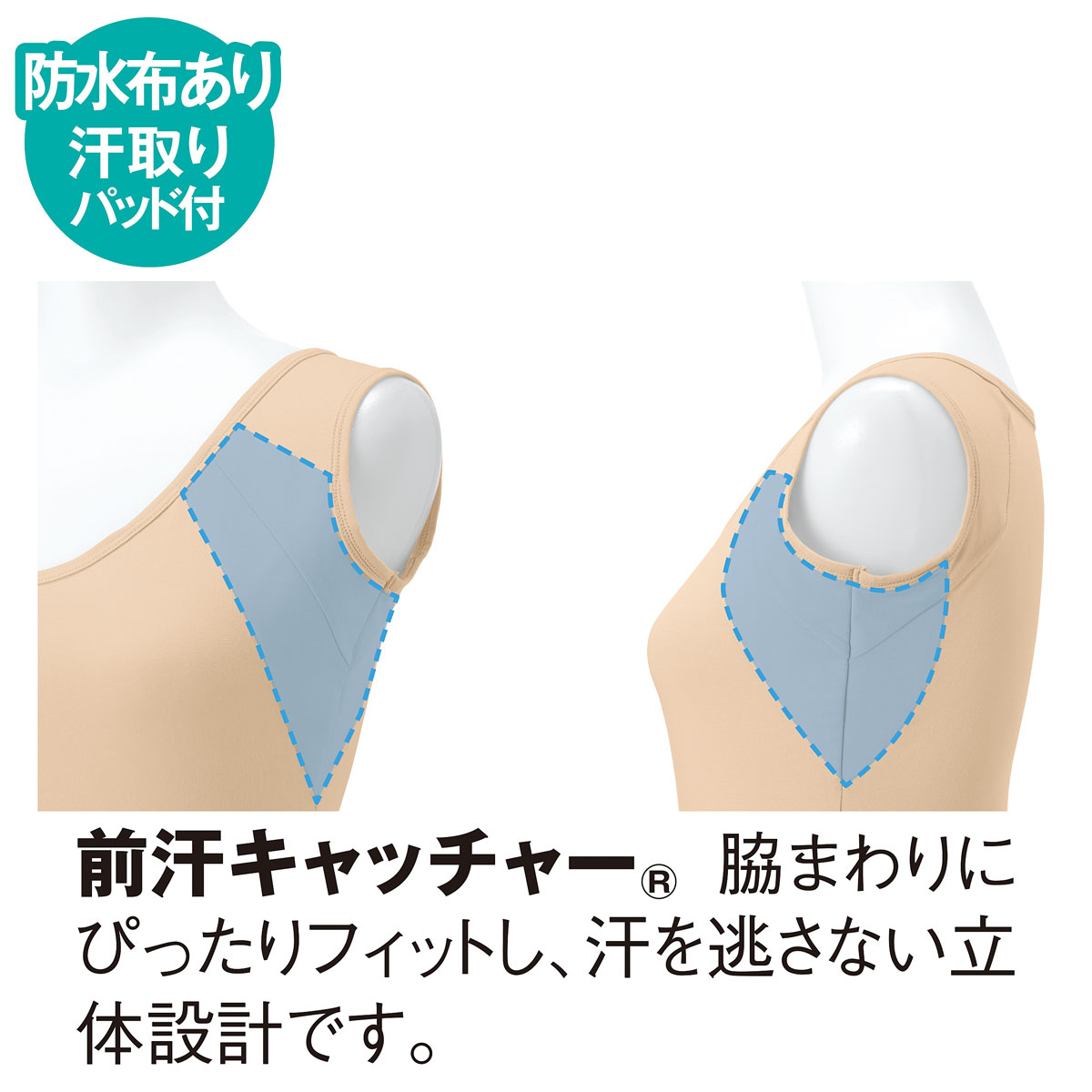 前汗取り付きノースリーブ切替スリップ(前汗キャッチャー®・吸汗速乾)