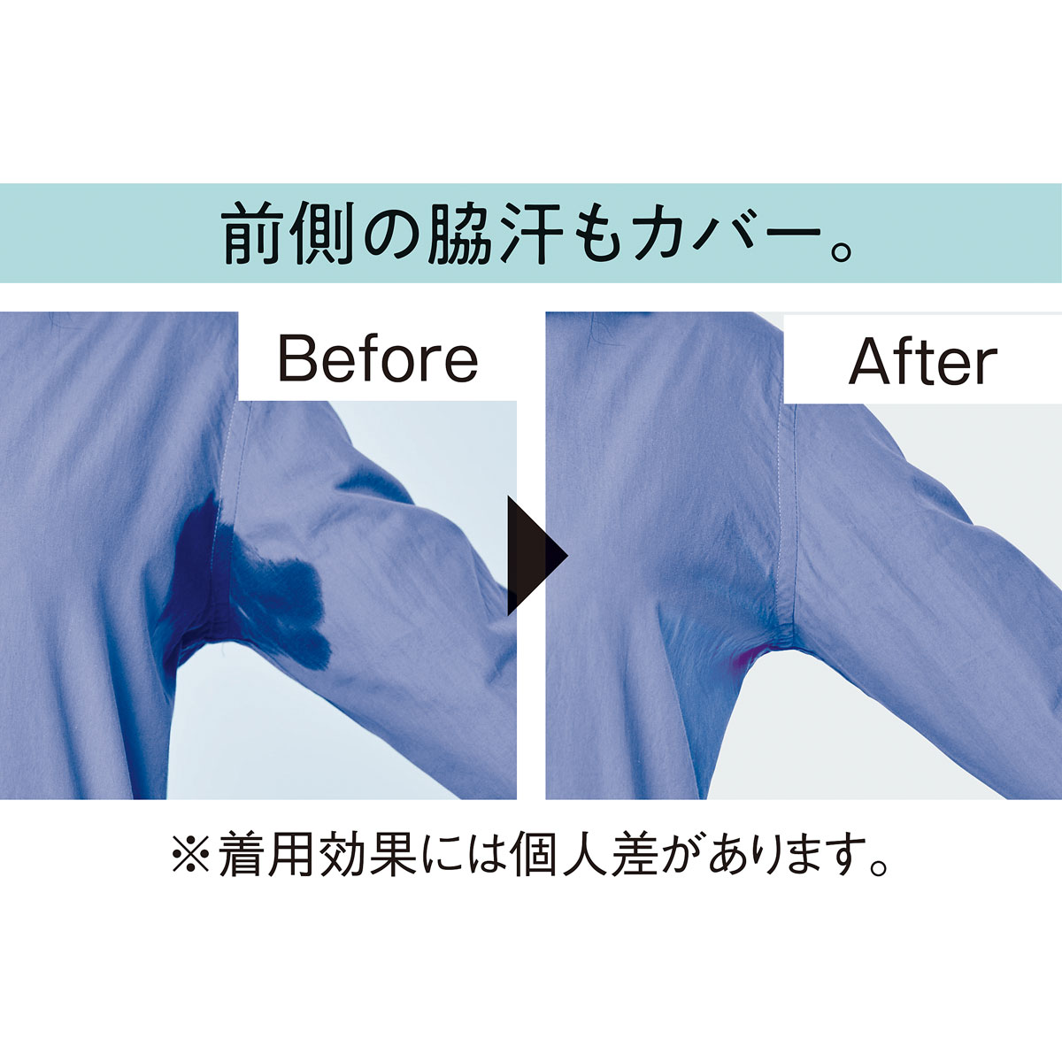 脇まわりにぴったりフィットし、前汗をキャッチ!汗を逃さない立体設計です。