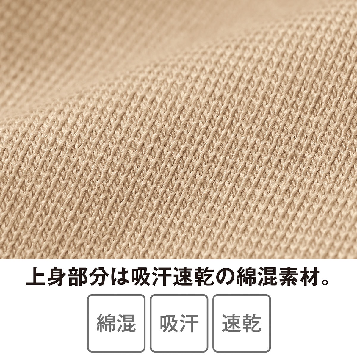 汗をかきやすい上身部分は吸汗速乾の綿混素材を使用しています。