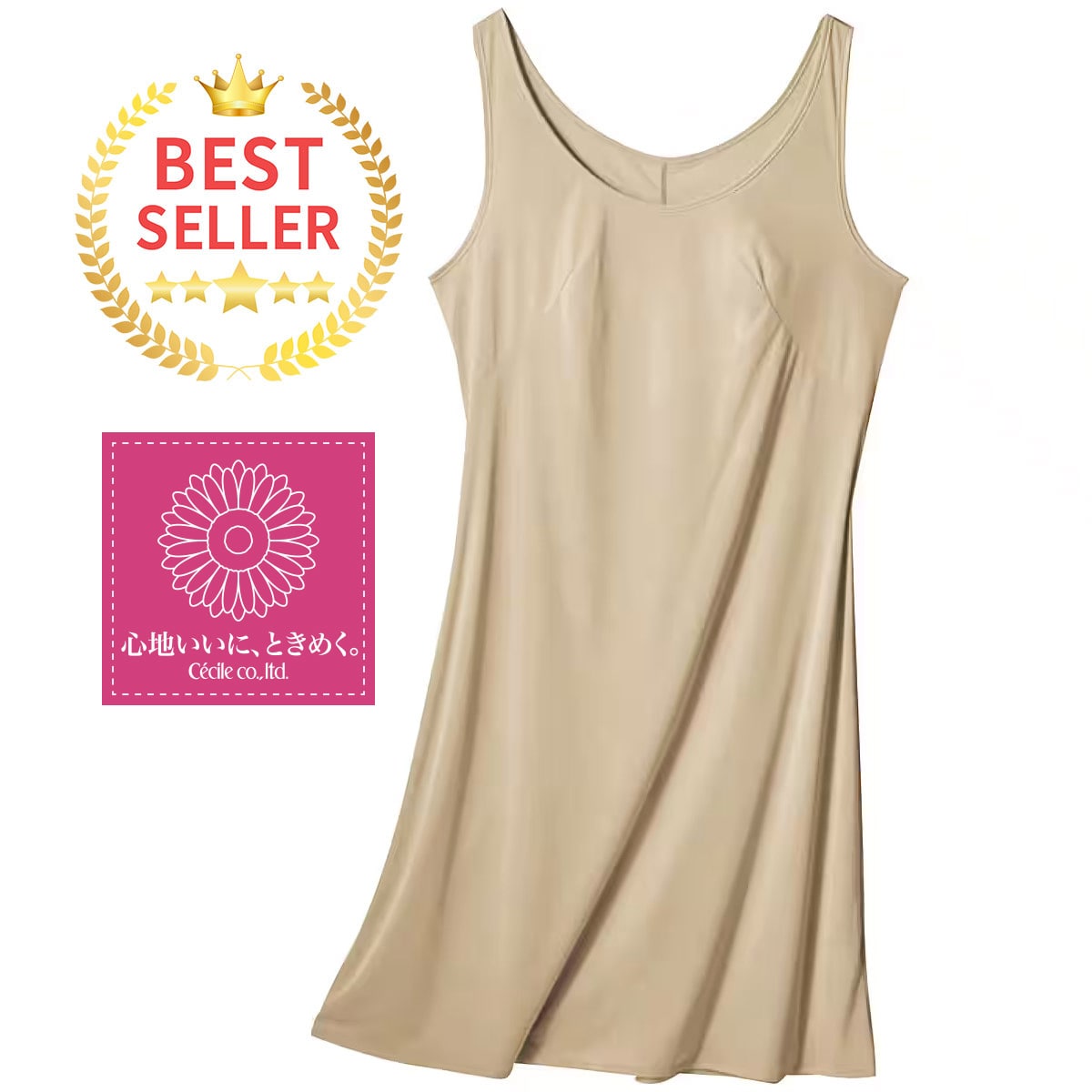 こだわり素材「Vega®」のなめらかランジェリー。肩ひもがズレにくくラクで安定した着心地のラウンドスリップ。シェルベージュ