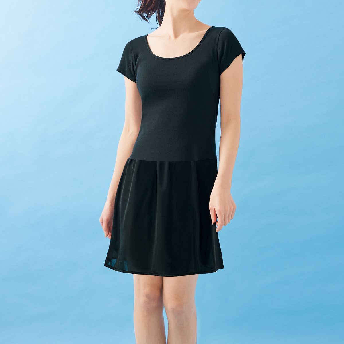 身頃はドライタッチの綿100%。スカート部分は滑りのいい合繊トリコット。