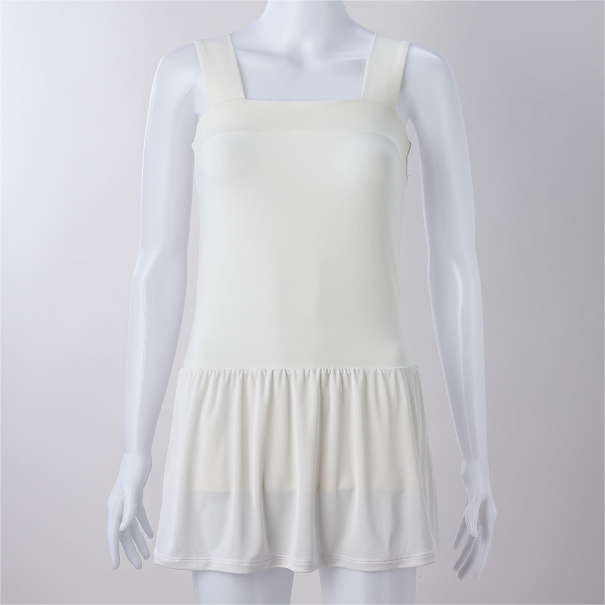 ■身生地=ポリエステル35%レーヨン30%綿30%ポリウレタン5%(ストレッチ天竺)スカート部分=ポリエステル100%(スムース)●ストラップは調節できません●中国製(スカート生地:日本製)【綿混】(上身)【静電気防止】(スカート部分)【大きいサイズも展開】(M~3L)【吸汗】(上身・スカート部分)【速乾】(上身・スカート部分)【身丈70/90cm】