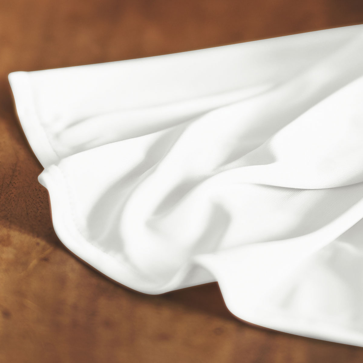 スカート部分はKBセーレン株式会社の「Vega」を原糸に使用。シルクのような光沢に、とろみのある贅沢な肌ざわりが心地良い100%国内生産の生地です。