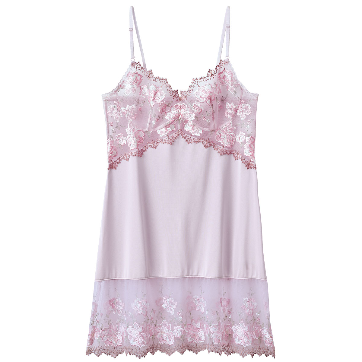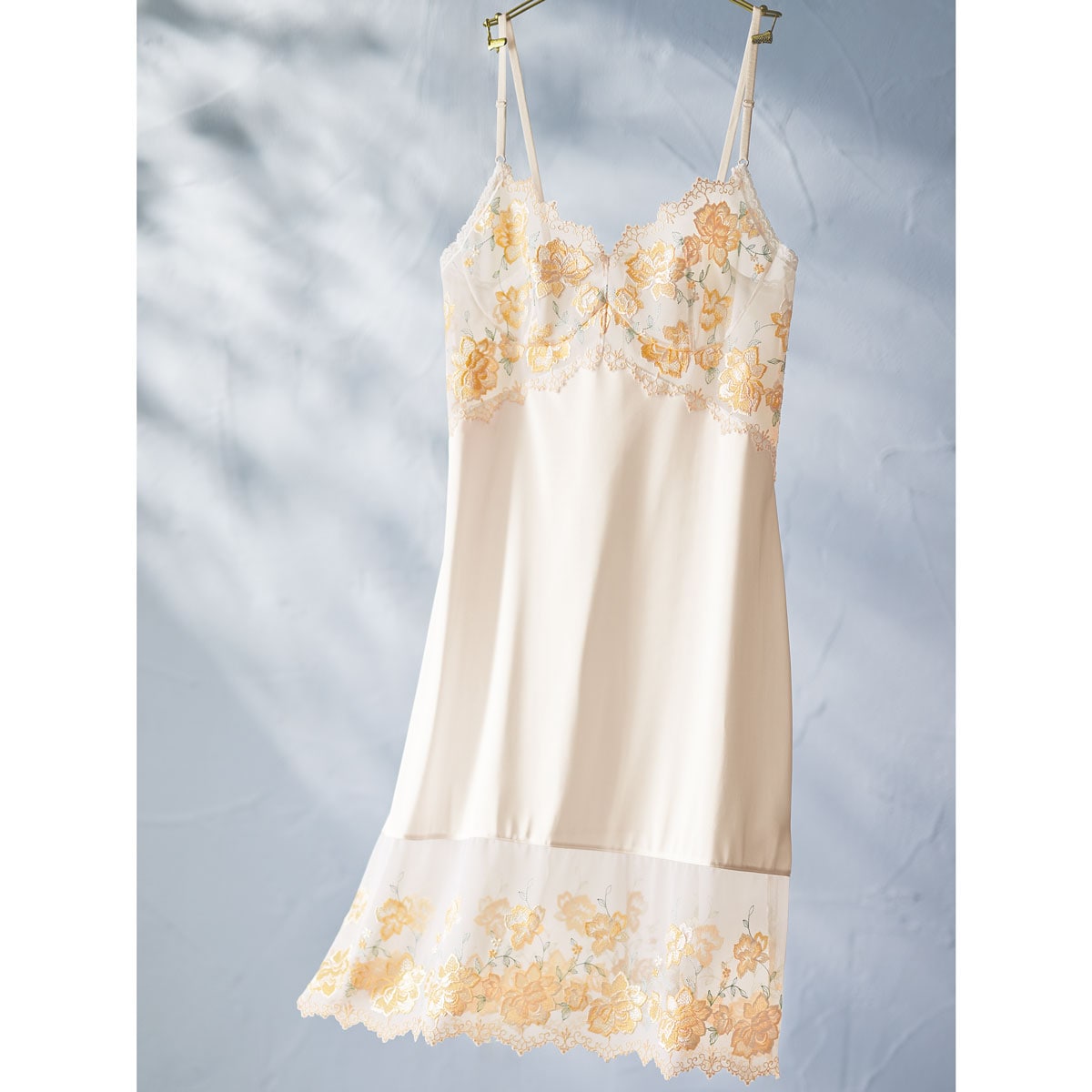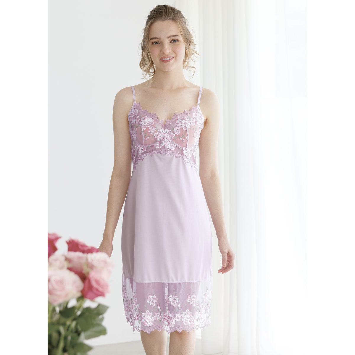 心華やぐ刺しゅうレーススリップ(日本製レーシィランジェリー)