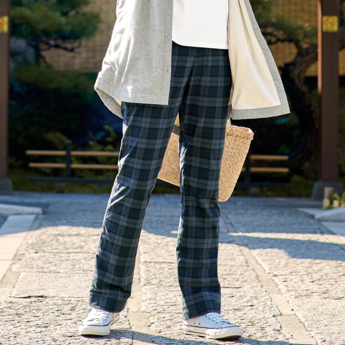 • あったか裏フリースストレートパンツ(防寒パンツ・着ぶくれしない・動きやすい・人気商品・選べる3レングス・節電対策) | グレンチェック